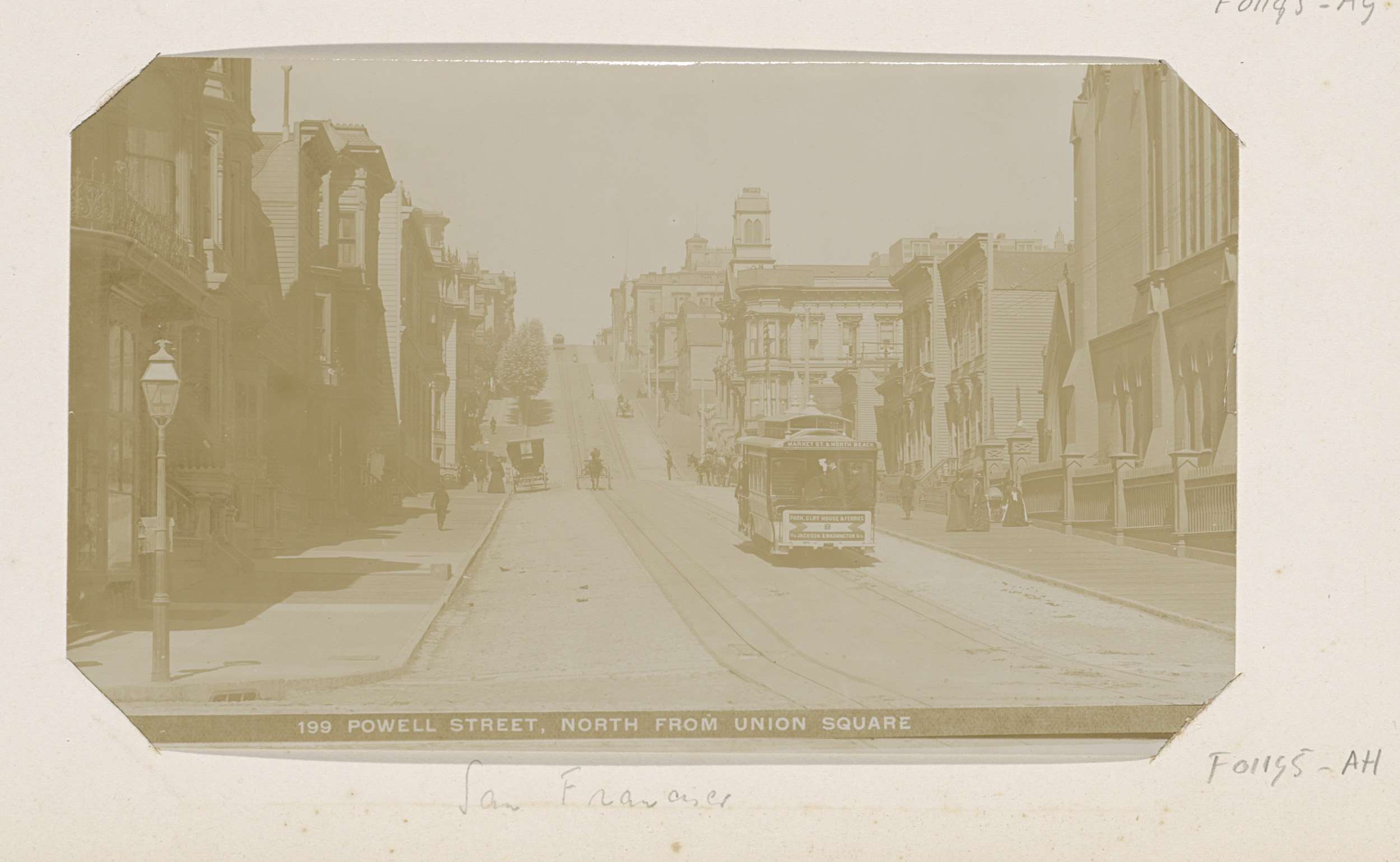 Powell Street in San Francisco met voetgangers, paar...
