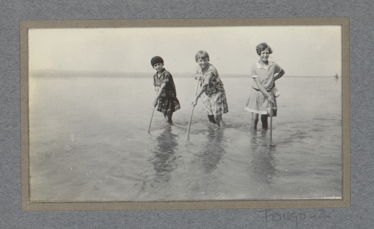 Drie kinderen in het water met stokken