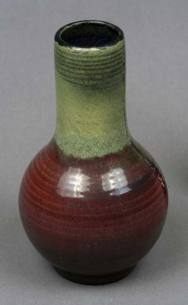 vaas van keramiek, groen/rood van kleur.