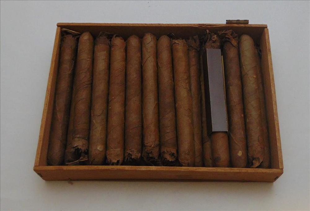 houten kistje met sigaren zonder etiket of sigarenba...