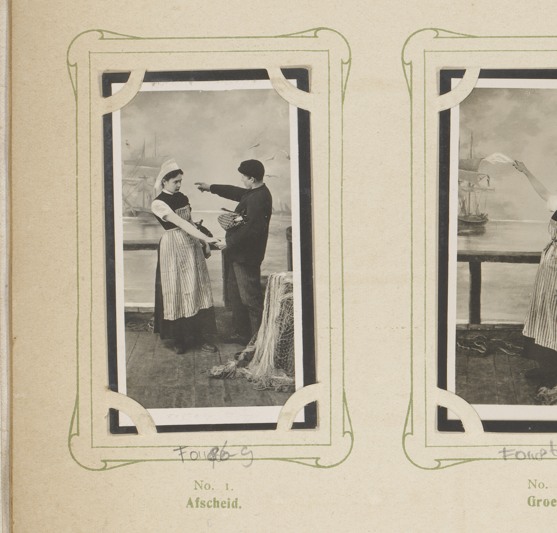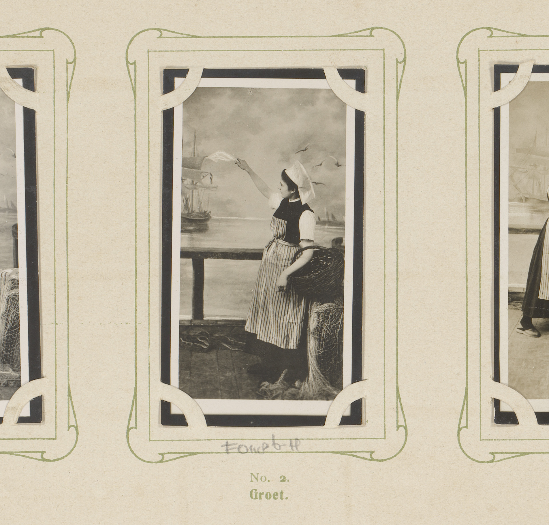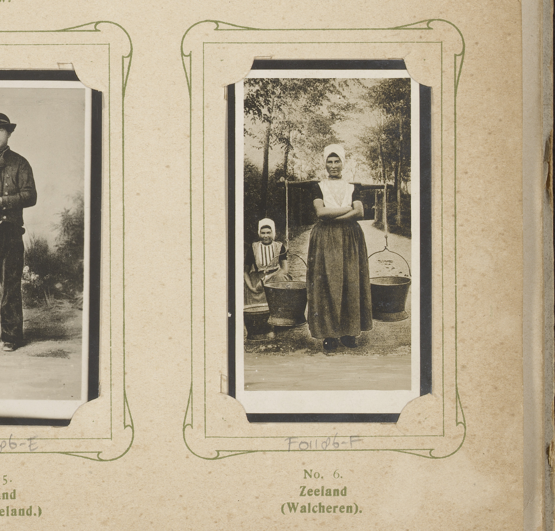Twee vrouwen met draagstok in Hollandse klederdracht