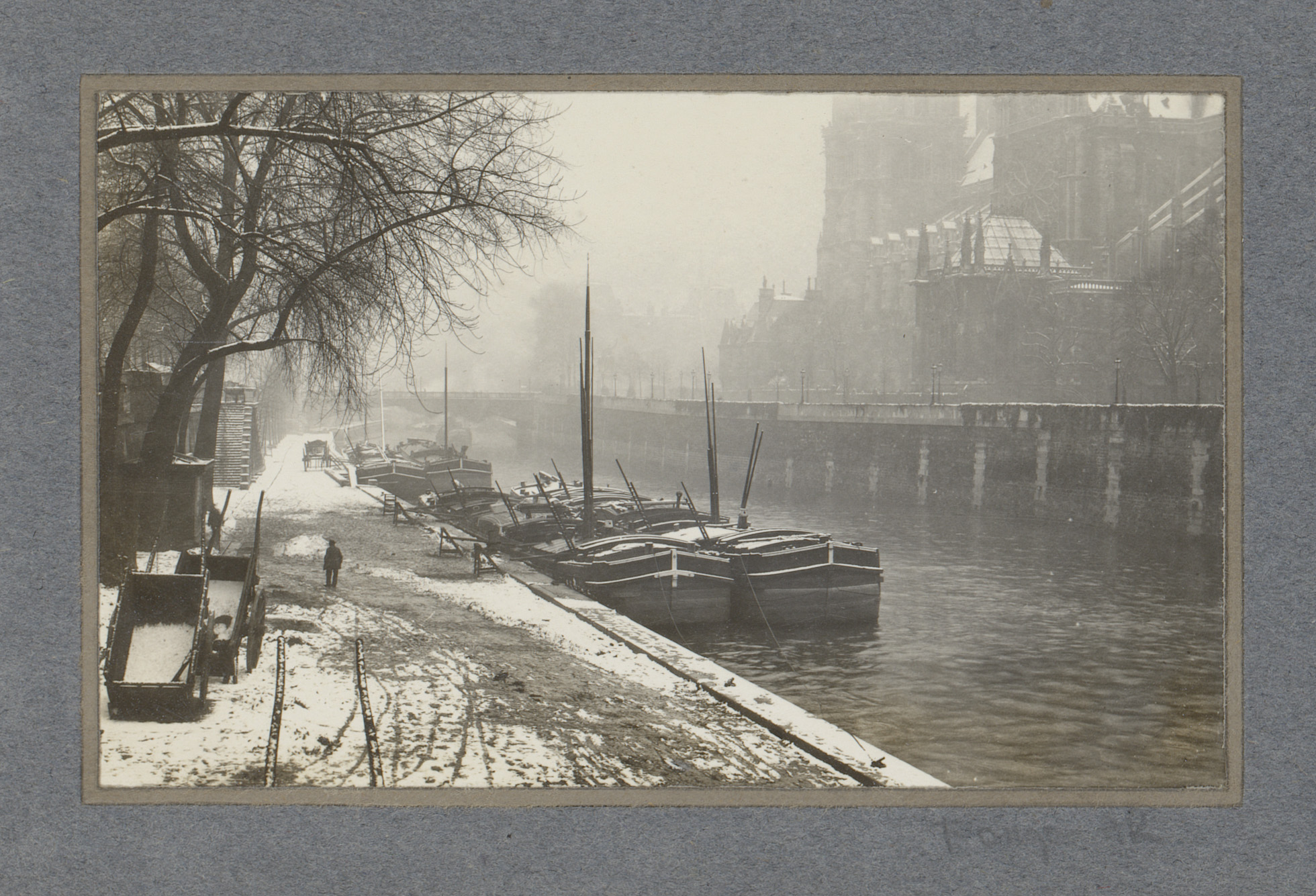 Gezicht op Parijs in de sneeuw met de Notre-Dame