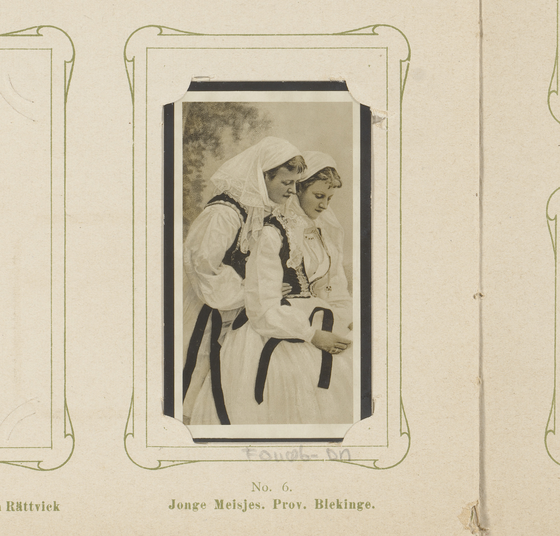 Twee jonge Zweedse vrouwen in traditionele kleding