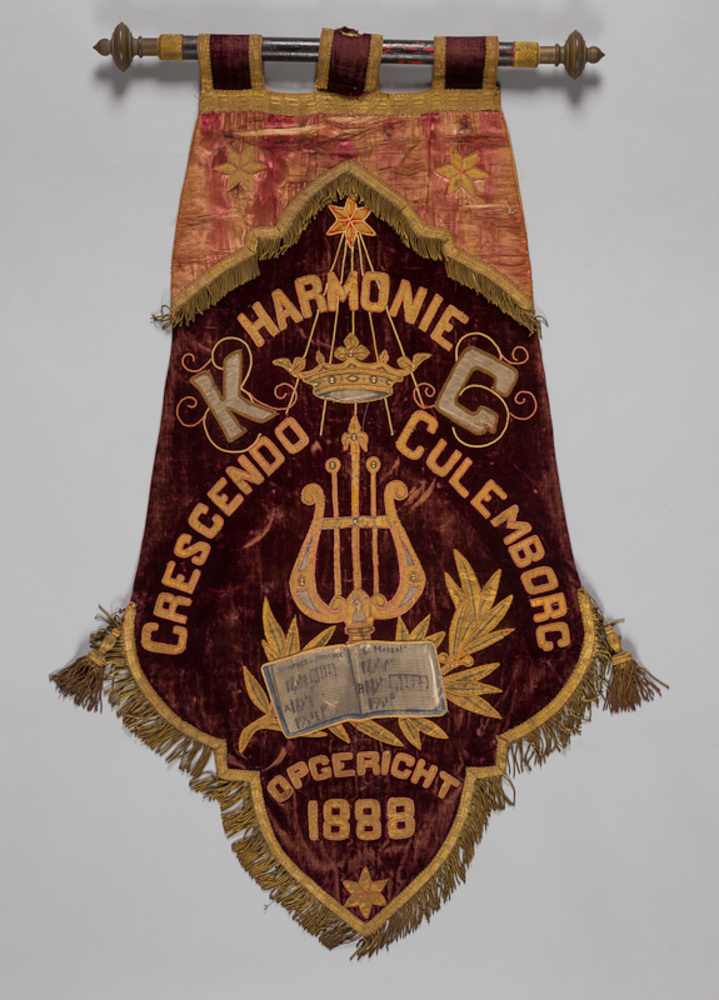 Vaandel van textiel, vervaardigd voor de harmonie Cr...