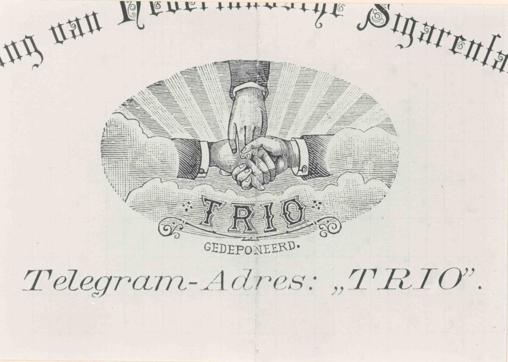 Foto, voorstellende etiket sigarenmerk "Trio" te Cul...