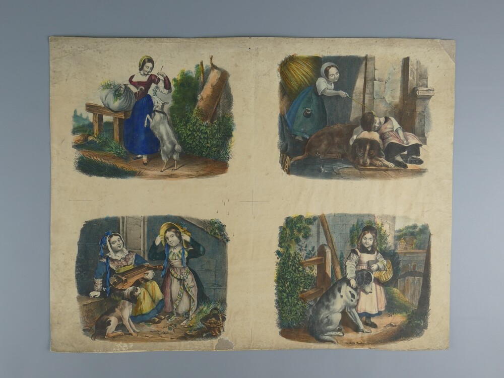 Litho, bestaande uit vier plaatjes van meisjes met g...