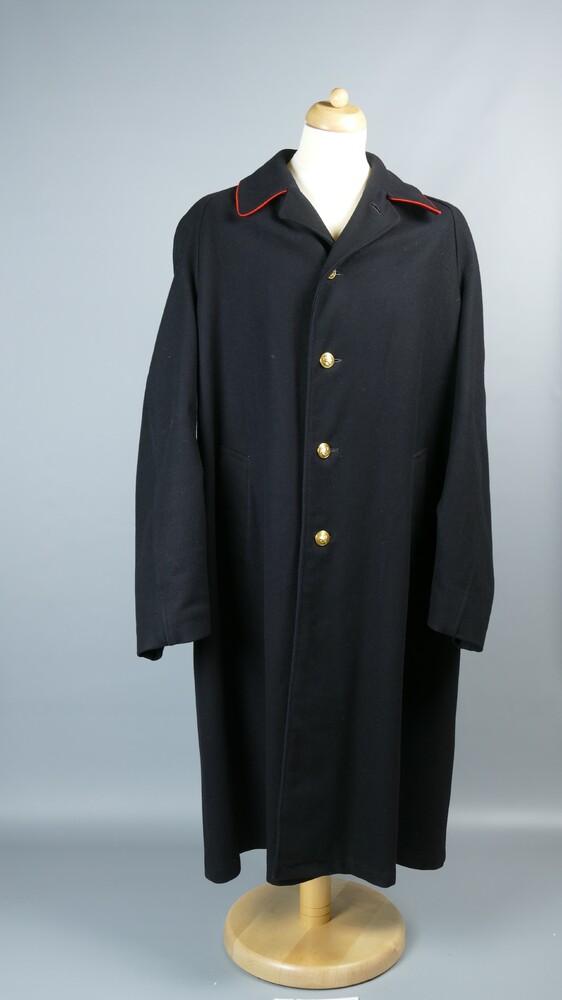 jas van zwarte wollen stof en met koperen