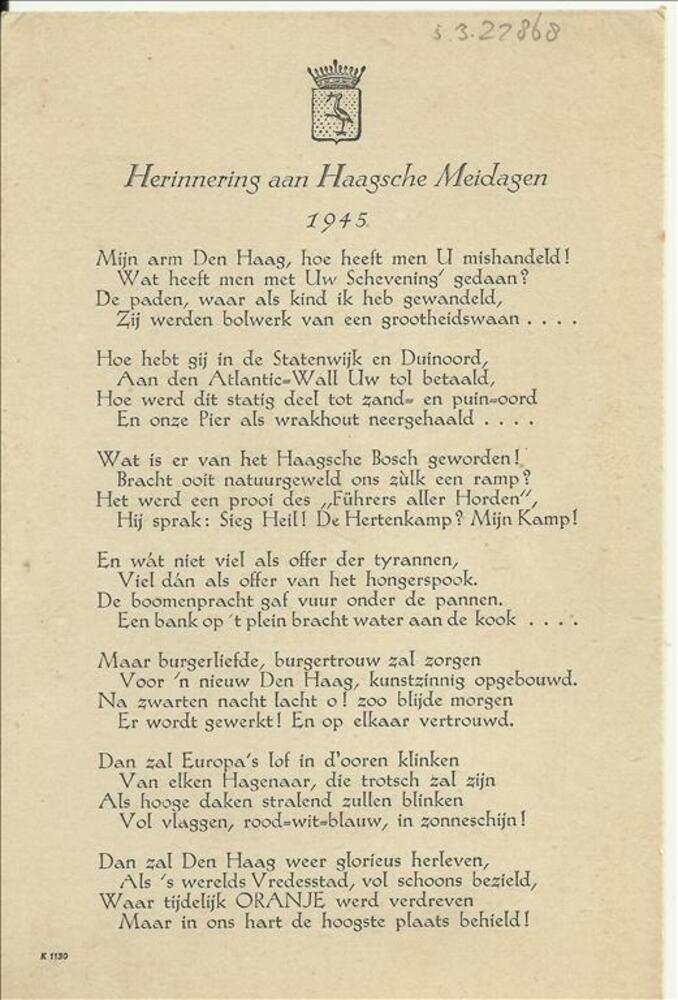 Herinnering aan Haagsche Meidagen, 1945