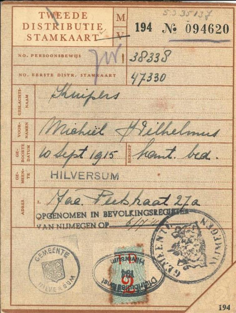 Tweede Distributiestamkaart op naam van M.W. Kuipers