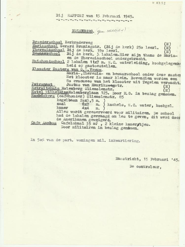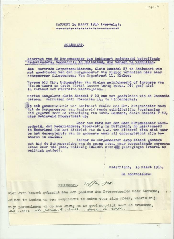 Rapport 10 maart 1945 en 1 januari 1946 bezoek Schim...