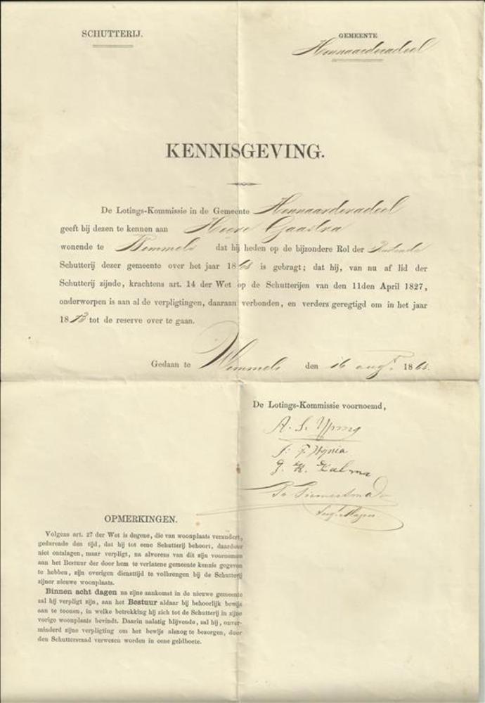 Kennisgeving van de Lotings-Kommissie der Schutterij...