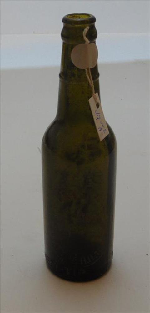 Twee bierflesjes groen van kleur met de volgende tek...