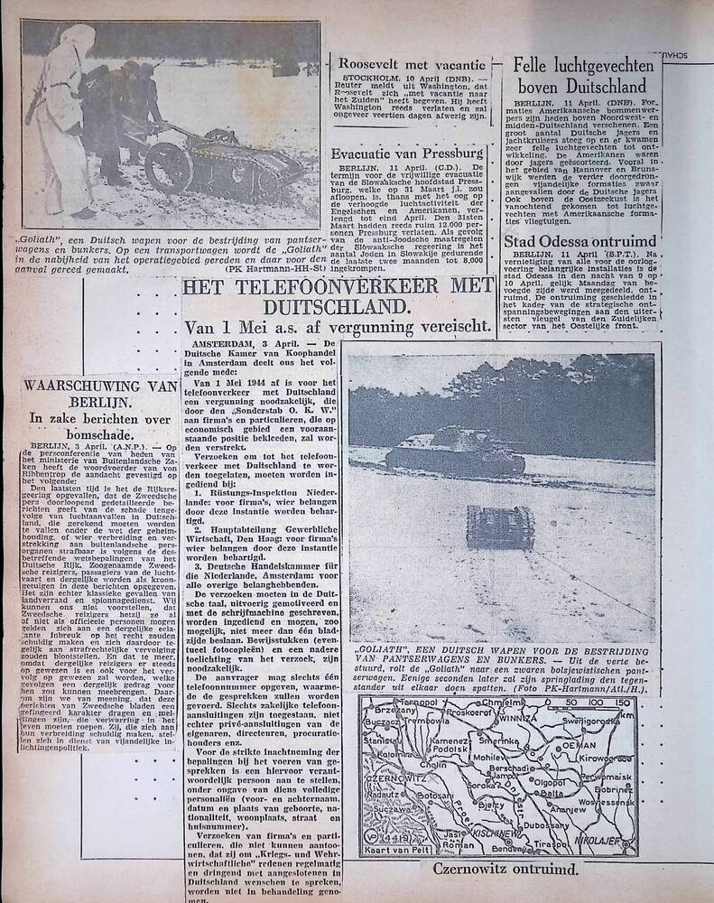 Een aantal krantenknipsels uit de oorlogsperiode 194...
