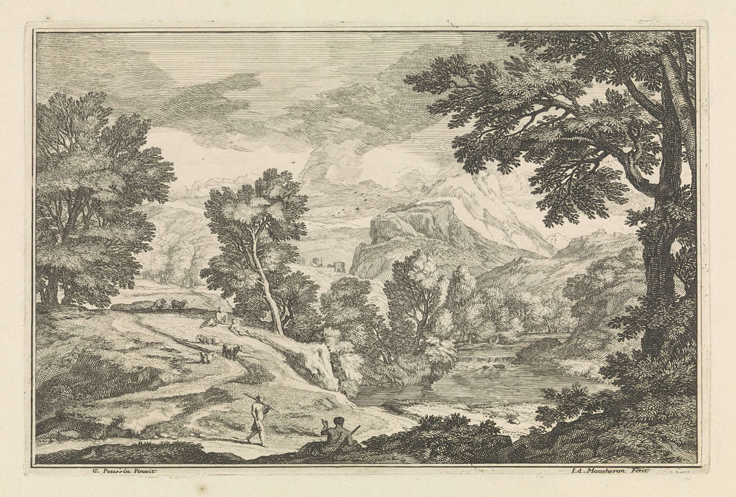 Landschap met een rivier en herders