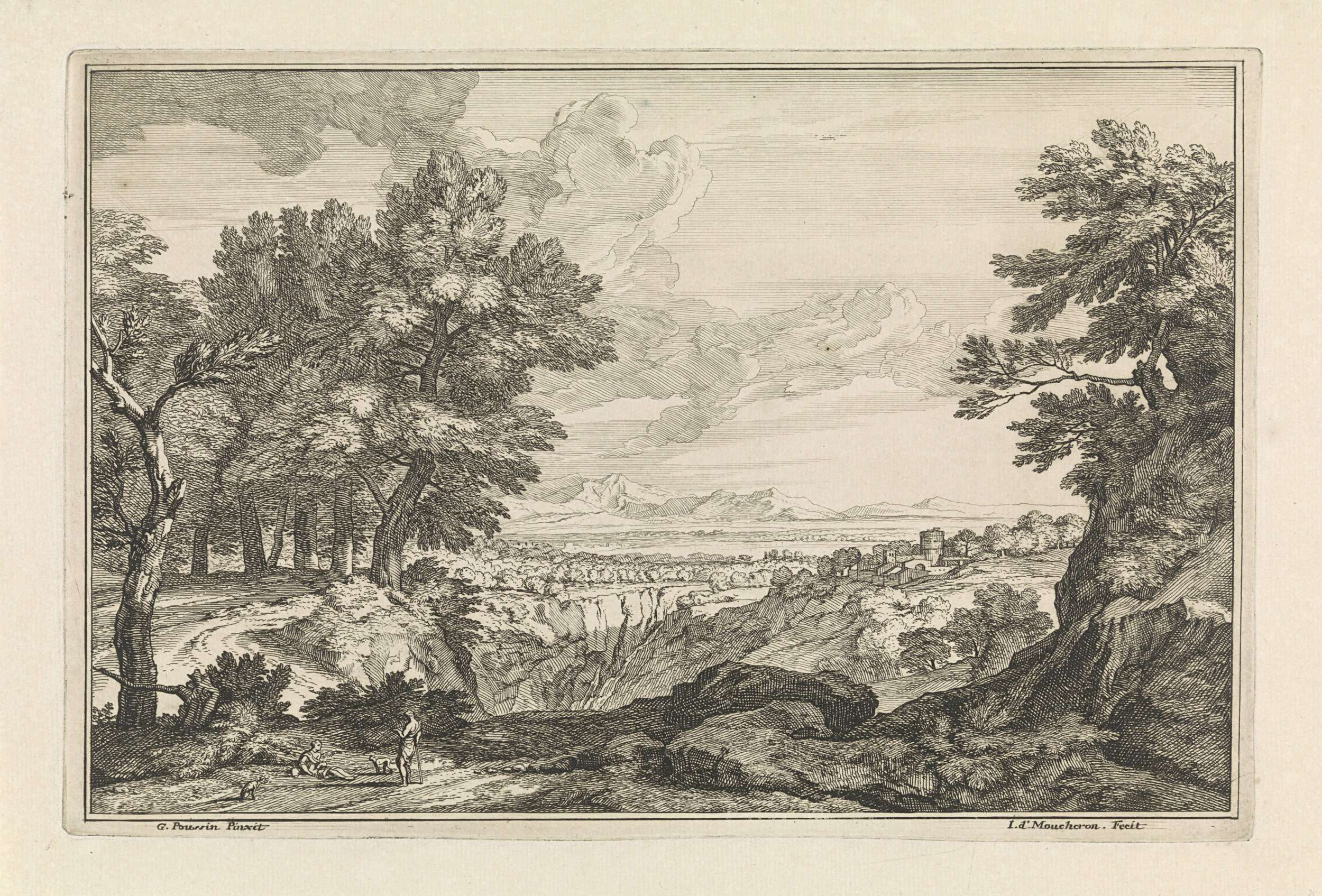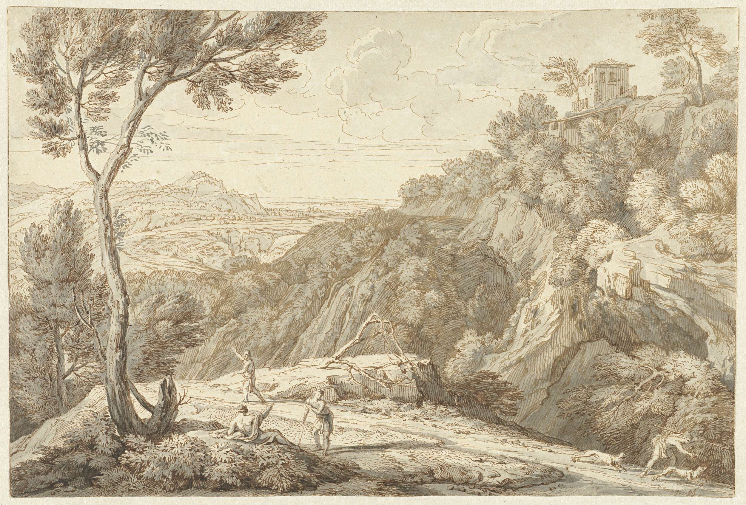 Landschap met twee rustende figuren op de voorgrond
