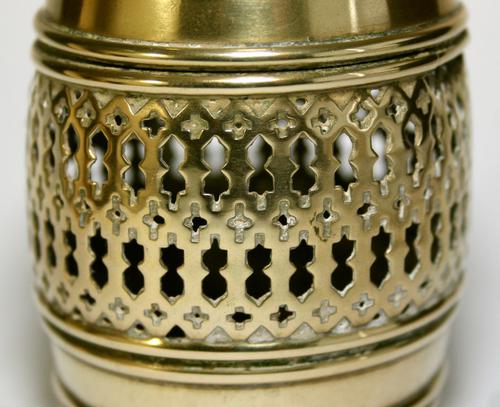 Spaarpot. Geel koperen opengewerkt wijnvat met scha...