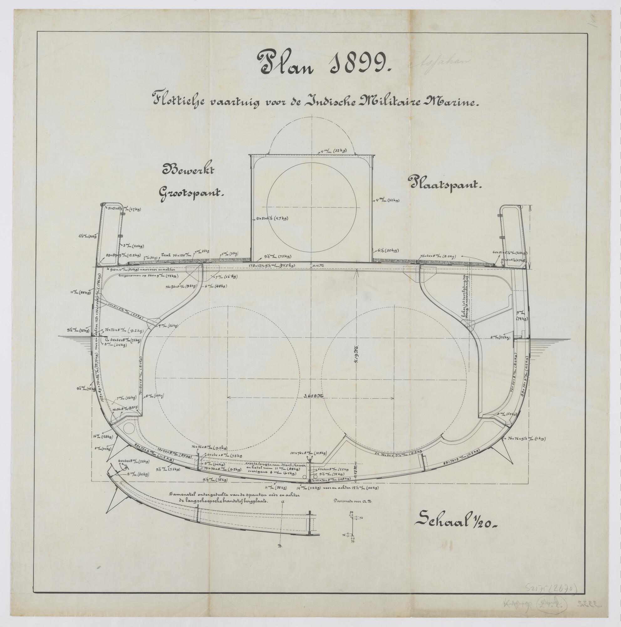 Dwarsdoorsnede over het bewerkt grootspant en het pl...