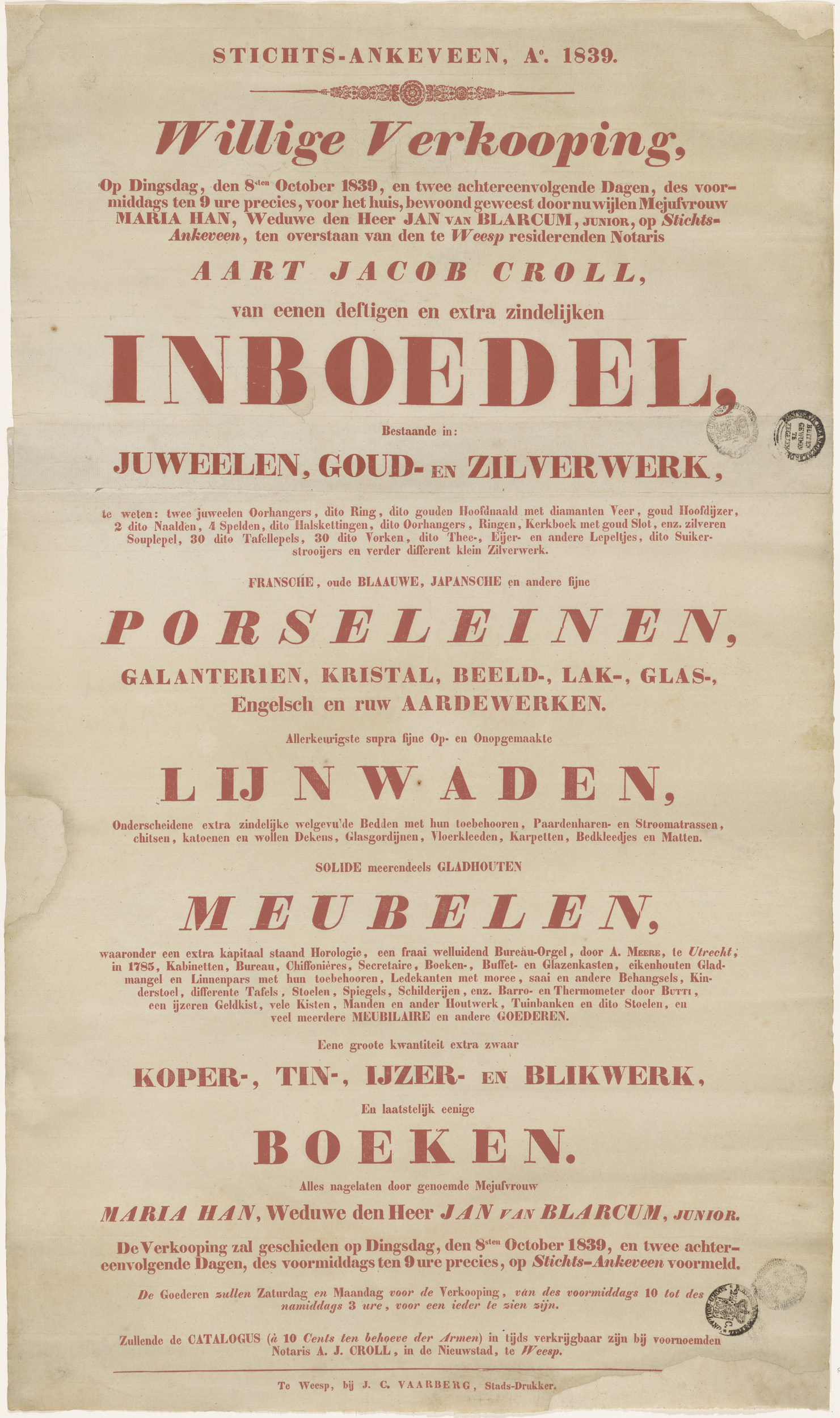 Affiche voor tentoonstelling van voorwerpen beschikb...