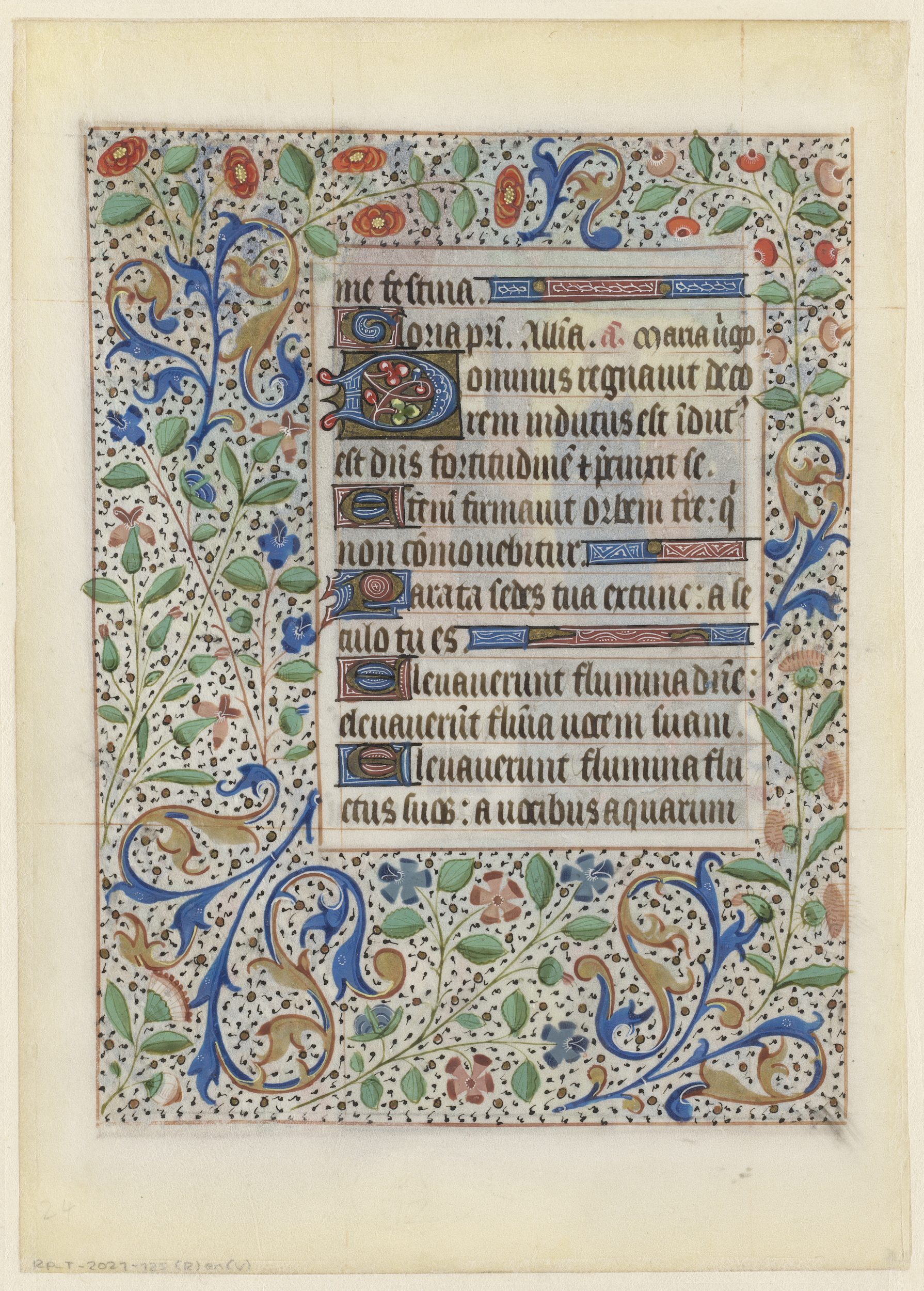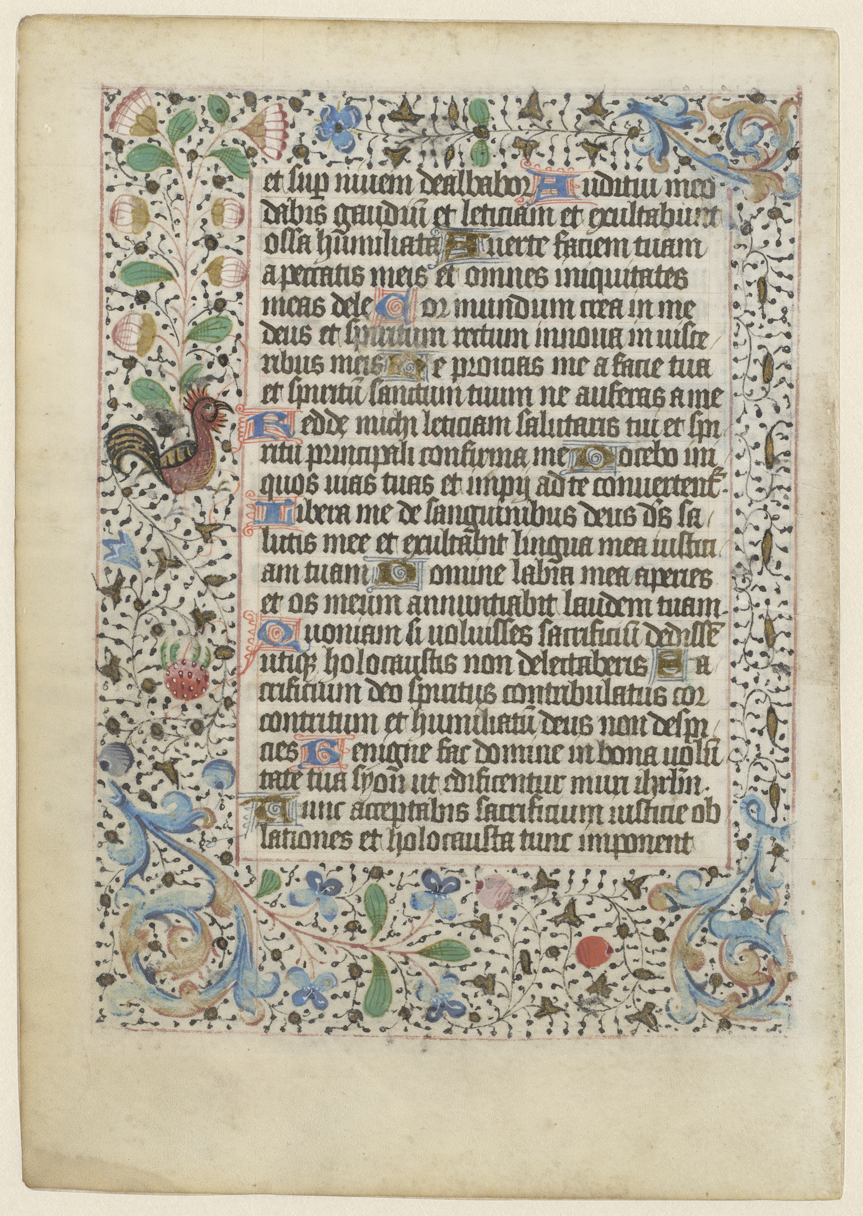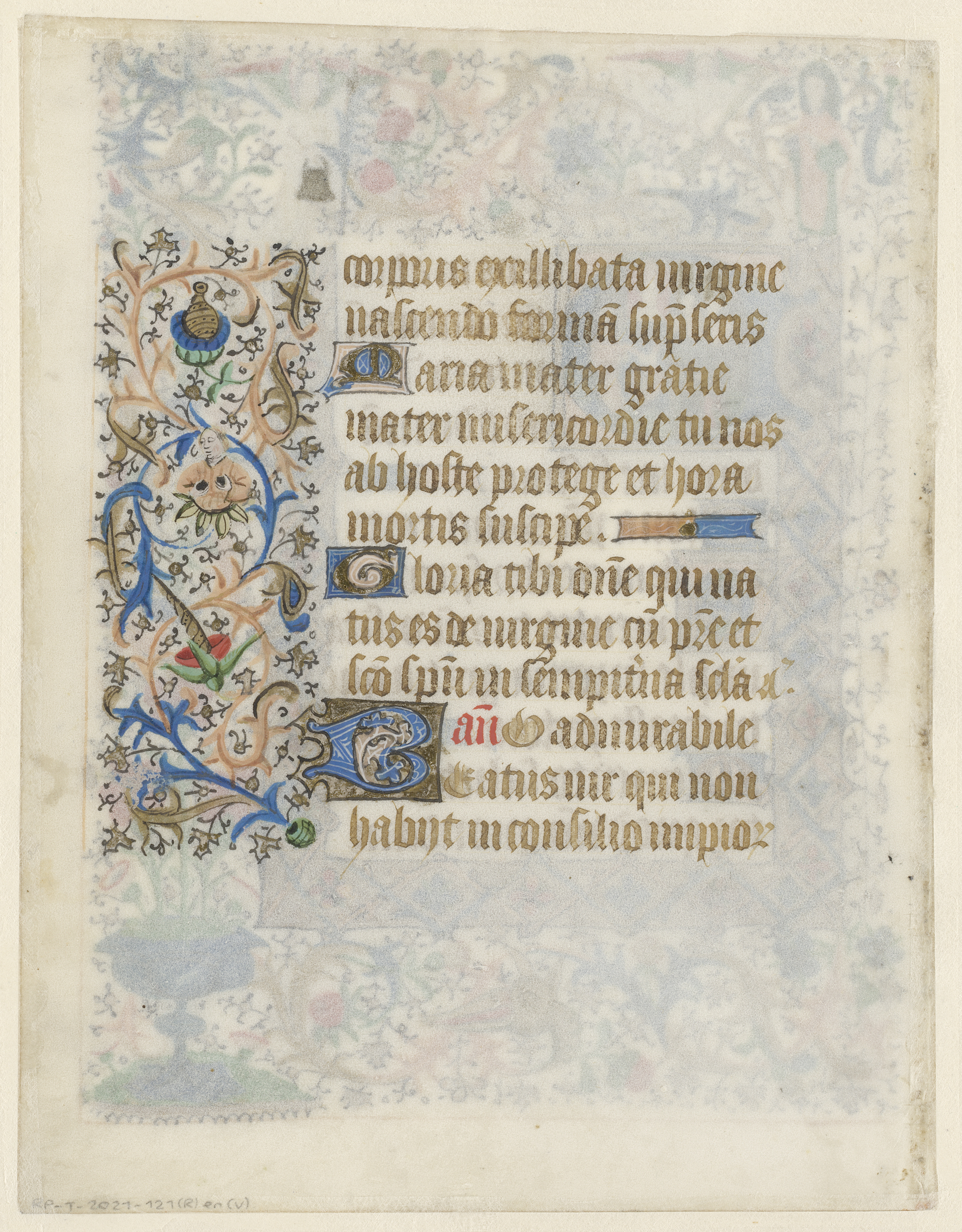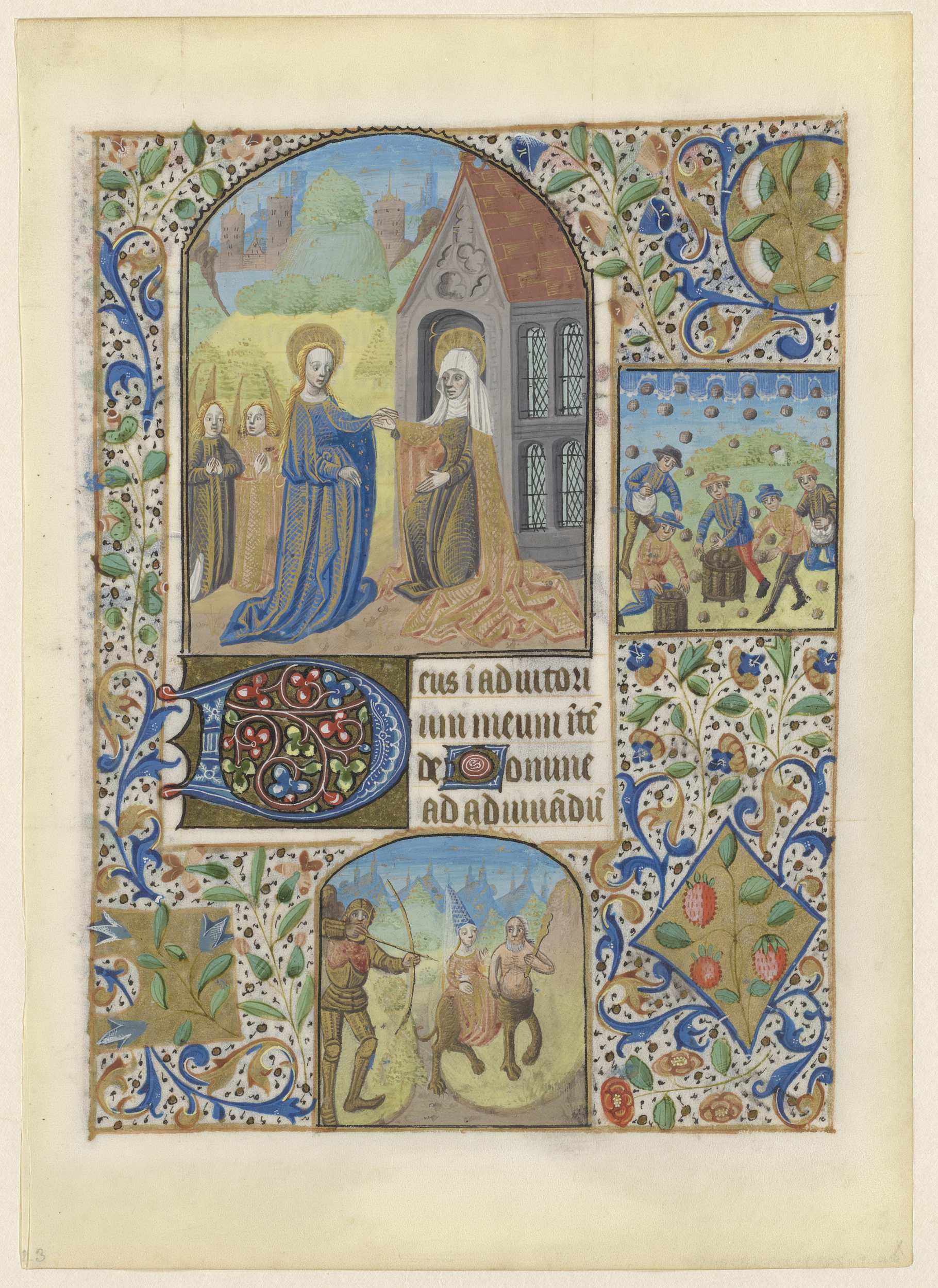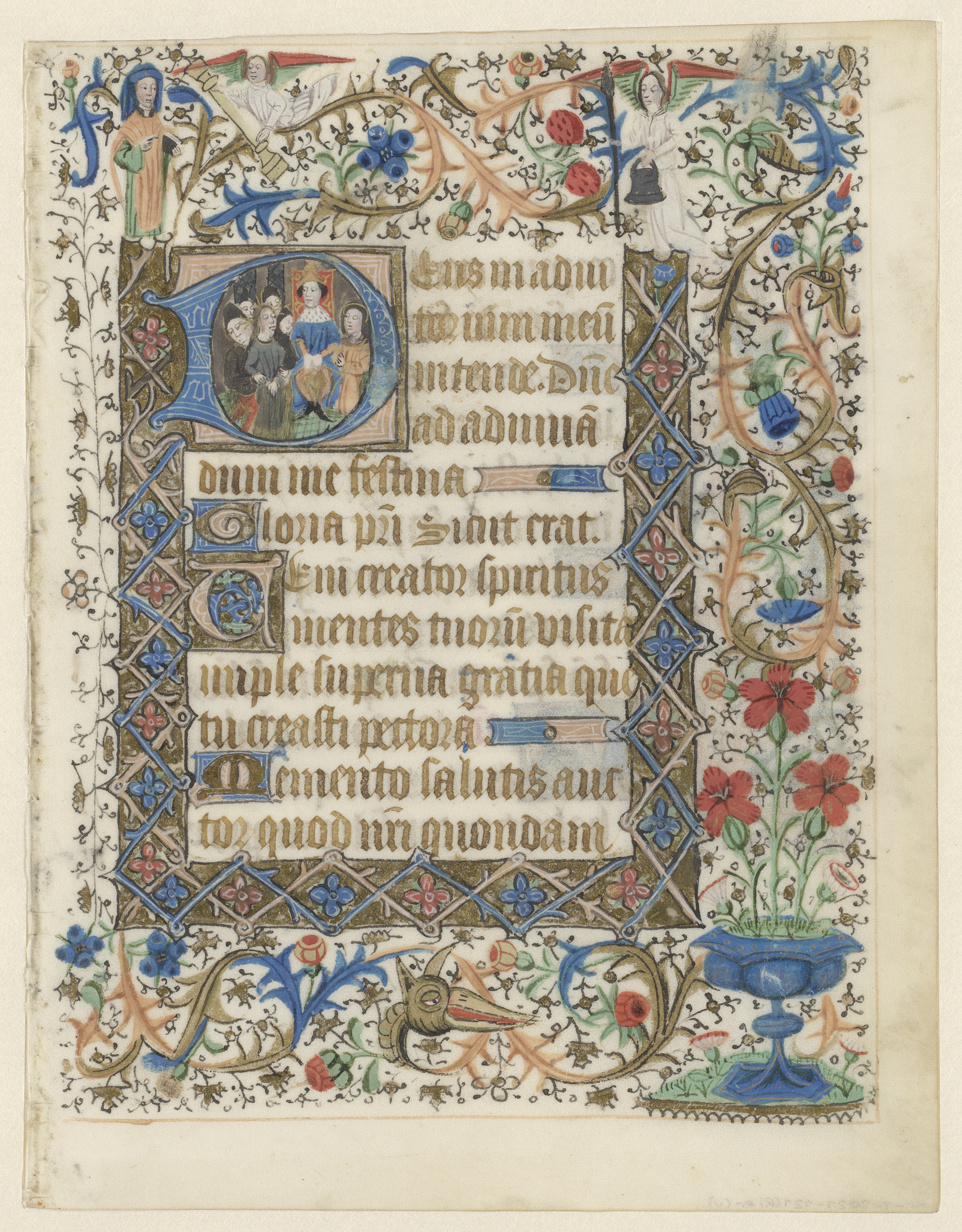 Blad uit een getijdenboek met gehistorieerde initiaa...