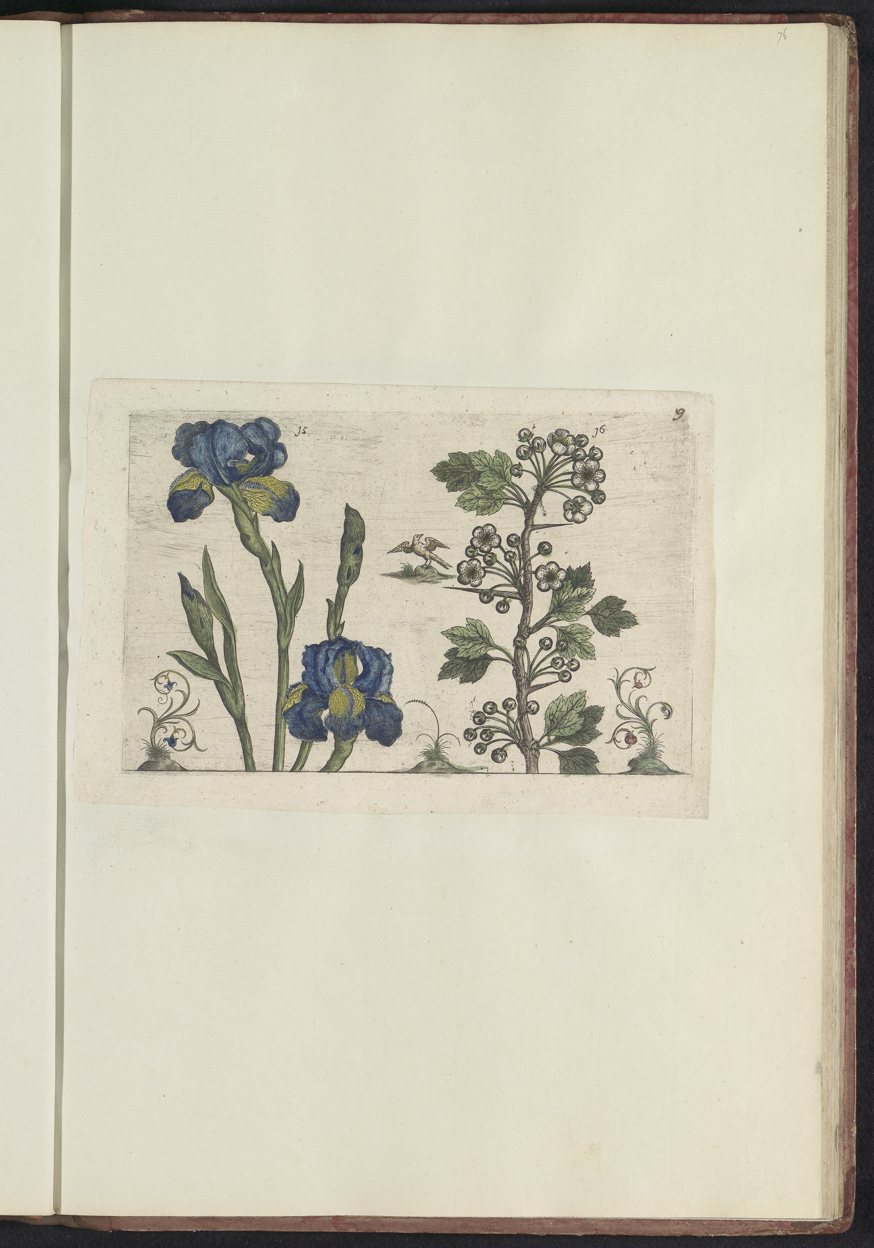 Baardiris (Iris germanica) en koraalmeidoorn (Cratae...
