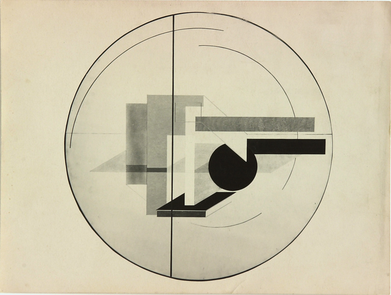 Foto van Lissitzky van zijn schilderij 'Ronde Proun'