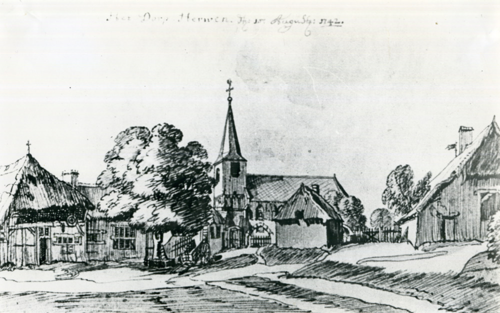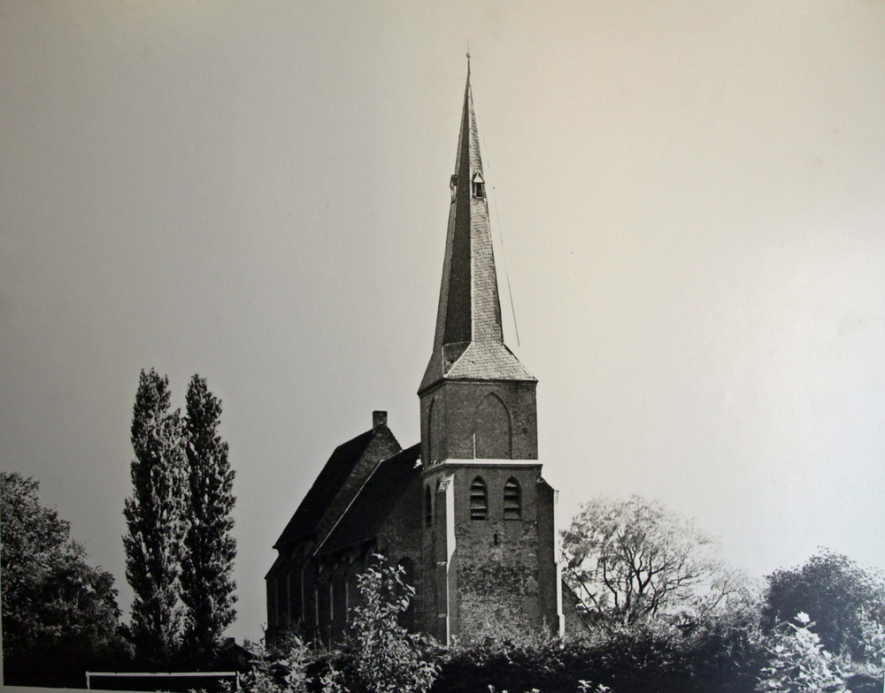 Zwart-wit foto van de Nederlands Hervormde Kerk in A...