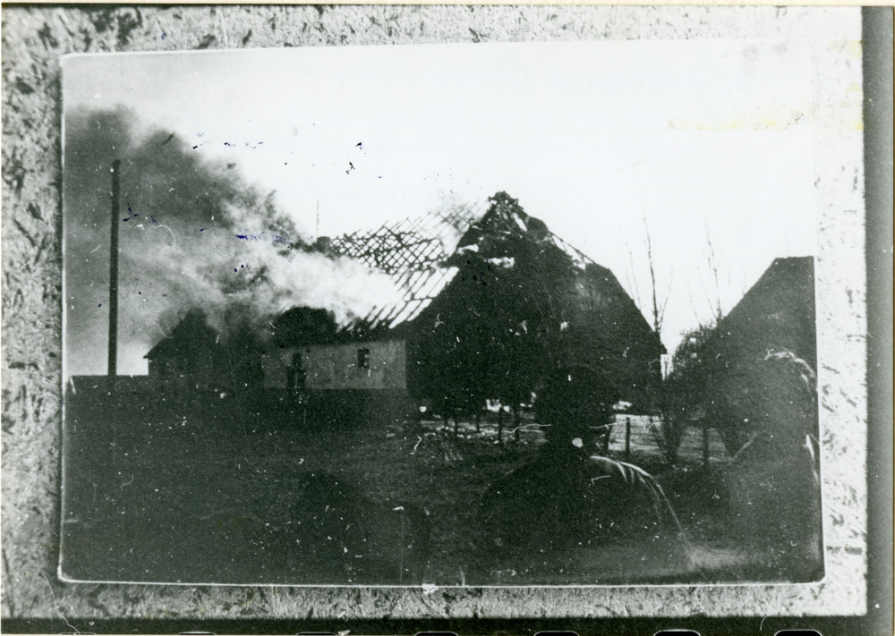Zwart-wit foto van een brand in het huis van Hendrik...