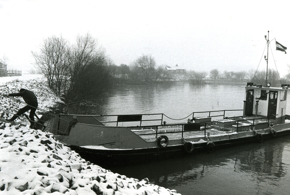Zwart-wit foto van het voetveer Pannerden - Millinge...