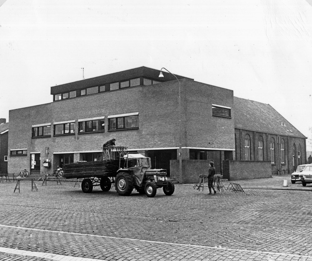 Zwart-wit foto van het Dorpshuis in Lobith in 1950