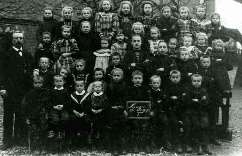 Zwart-wit foto van klas 2 van de lagere school te He...
