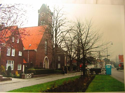 Foto:luchtfoto:nieuwe kerk met oude raadhuid