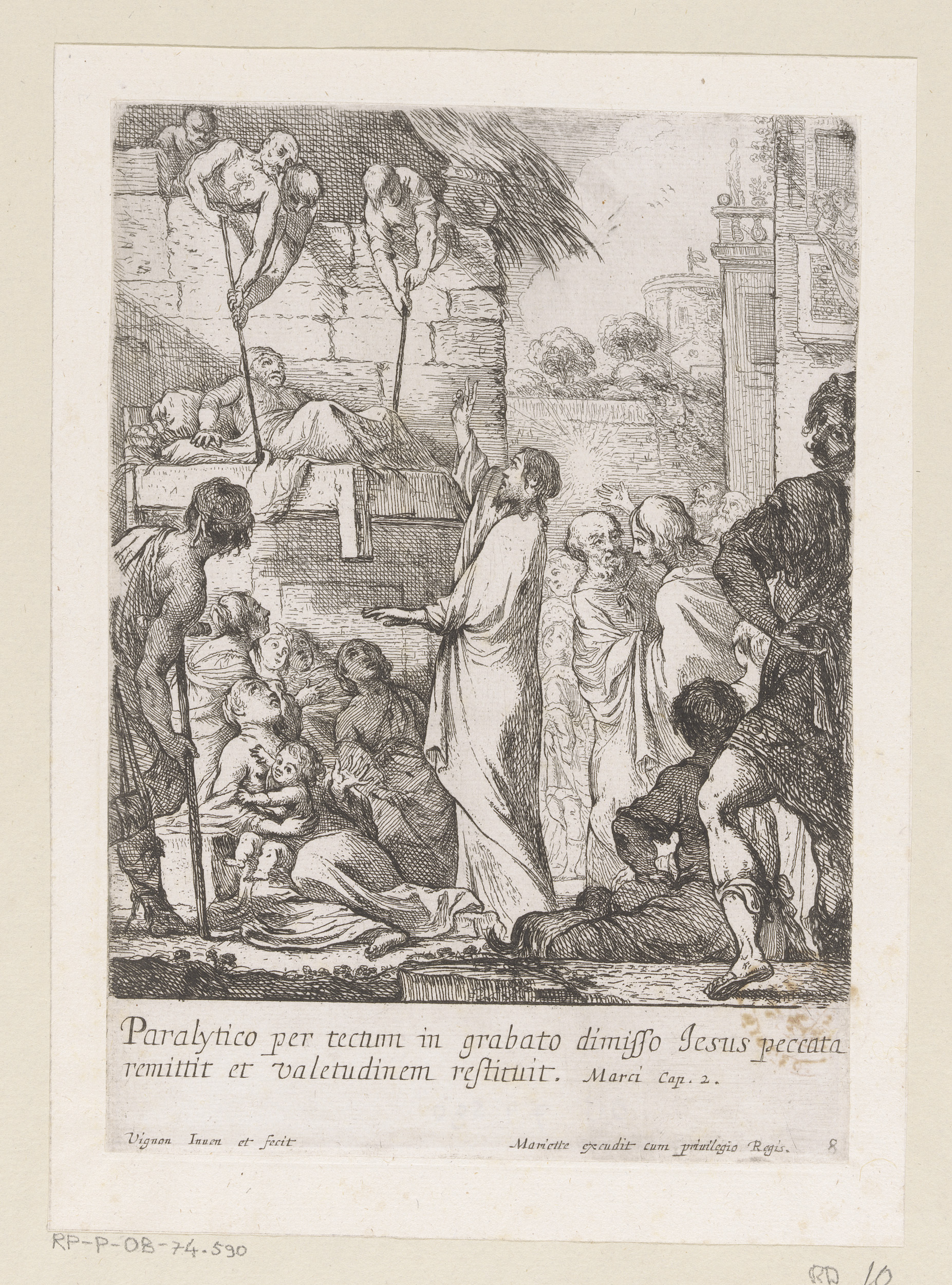 Christus geneest een verlamde man die door het dak w...