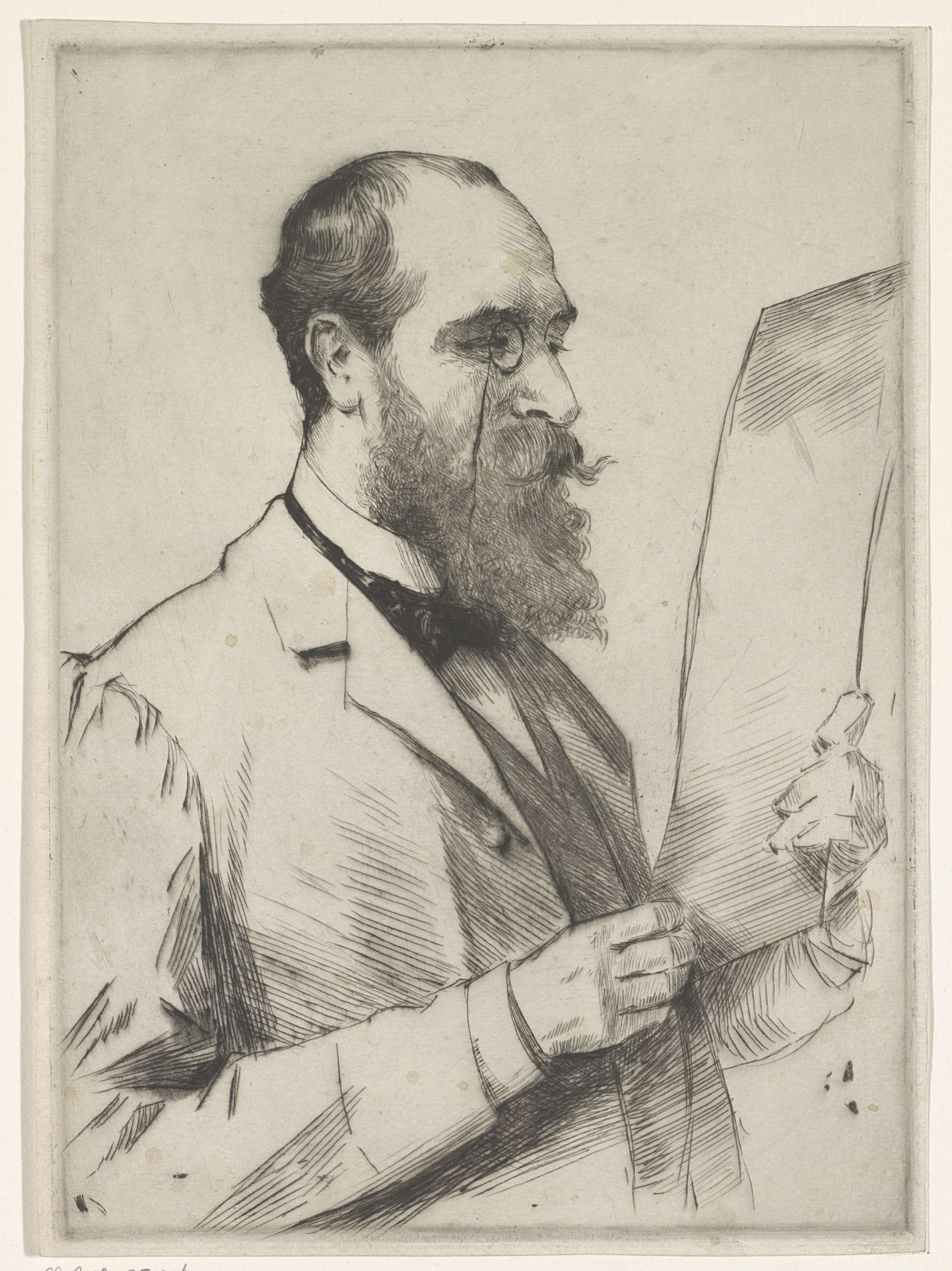 Portret van een lezende man met monocle