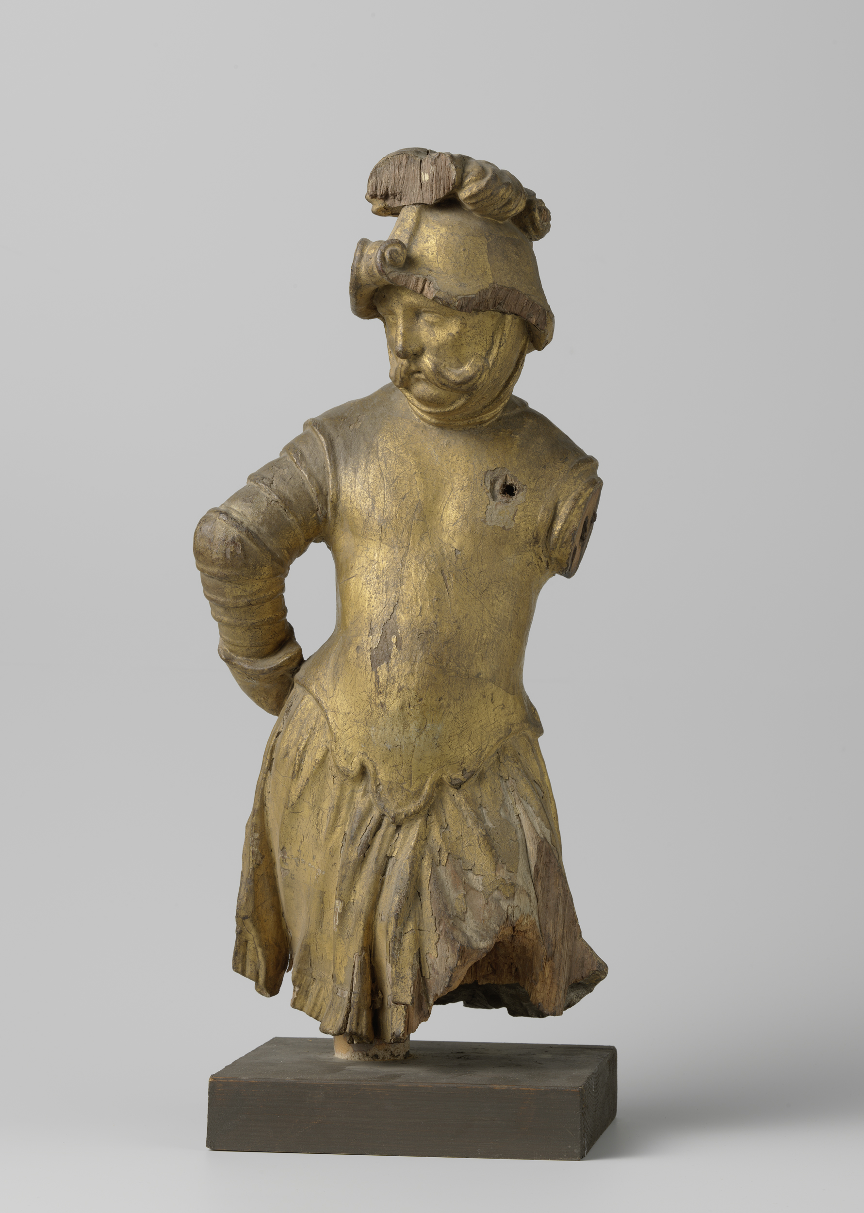 Hellebaardier van hout, fragment van het uurwerk in ...