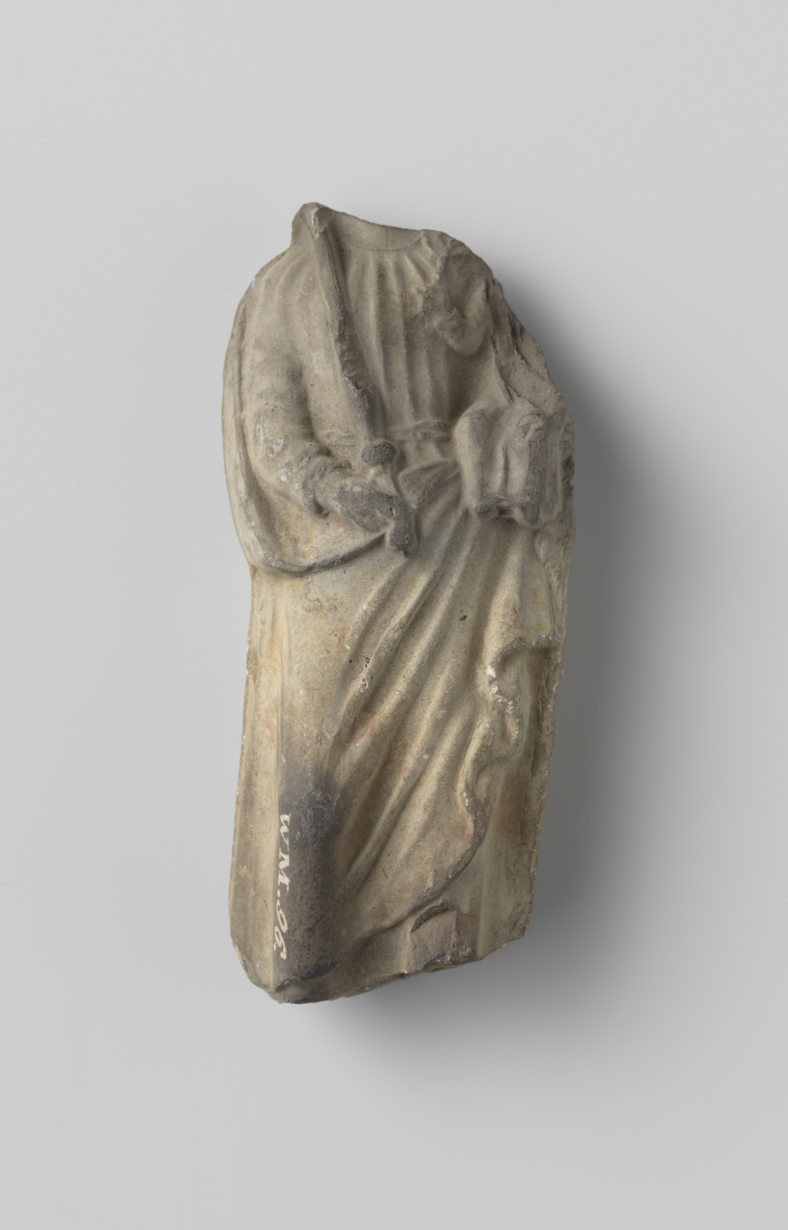 Beeld van een figuur in een mantel; het hoofd ontbreekt