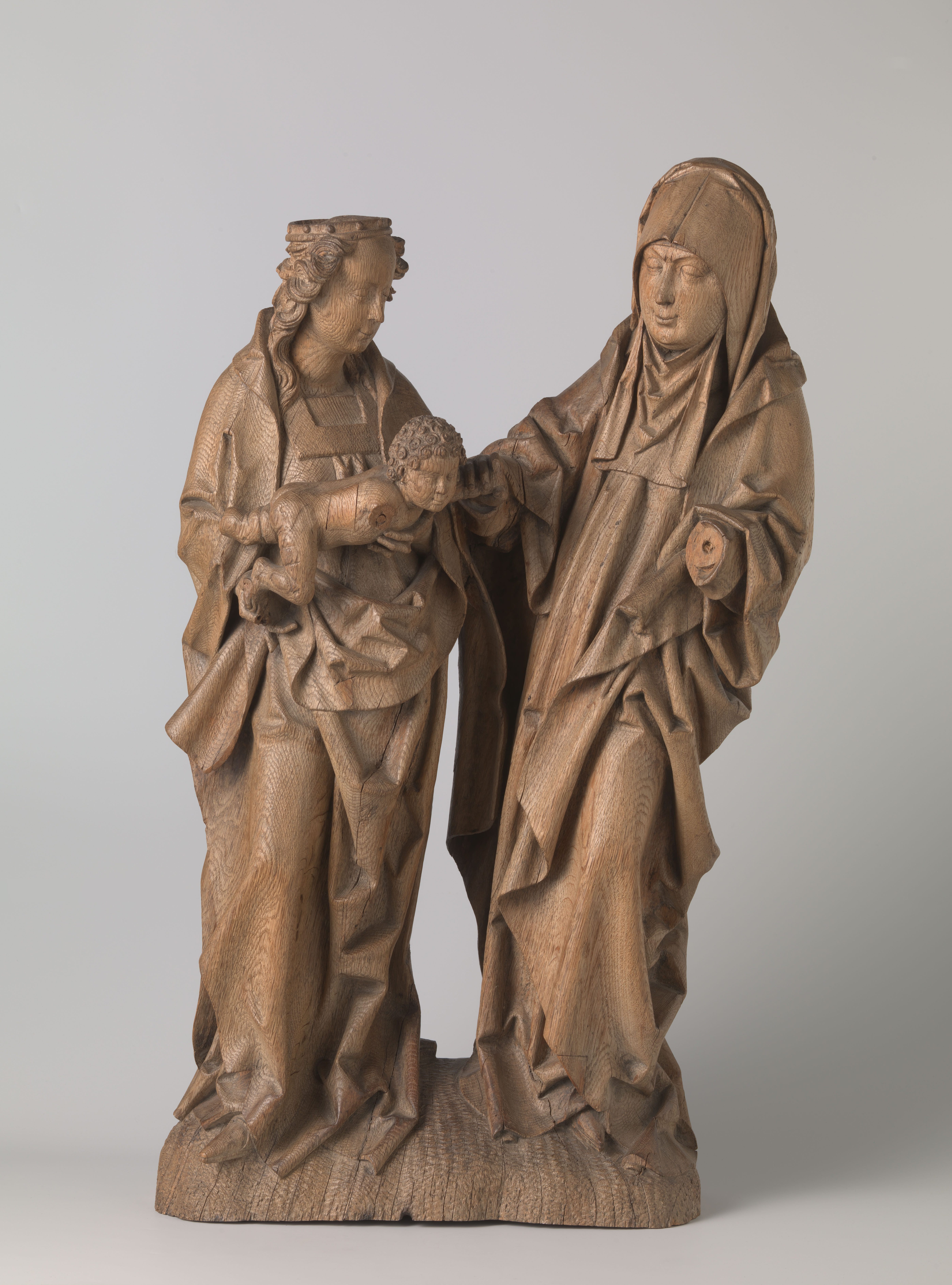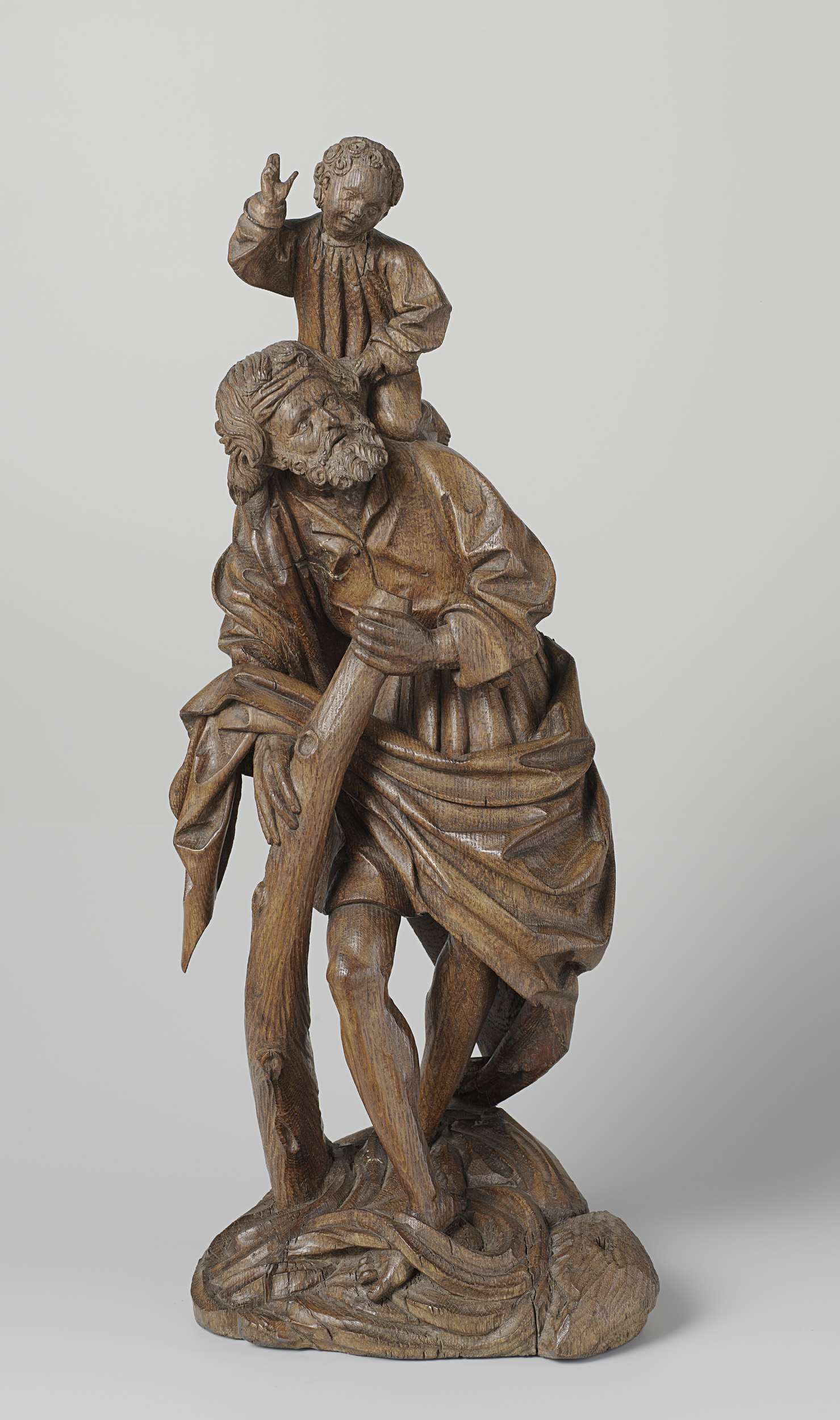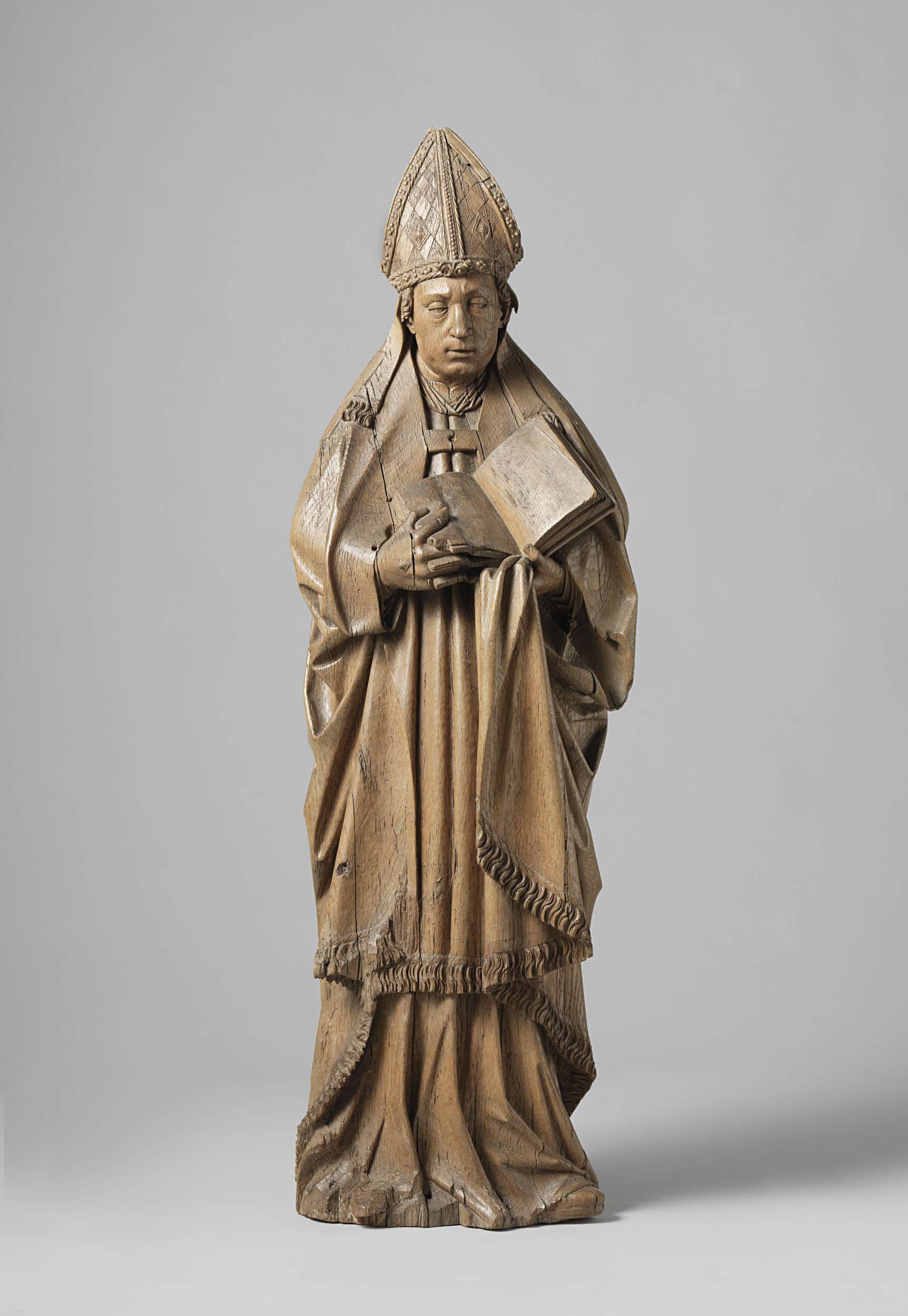 Beeld van een heilige in wijd, breed geplooid gewaad