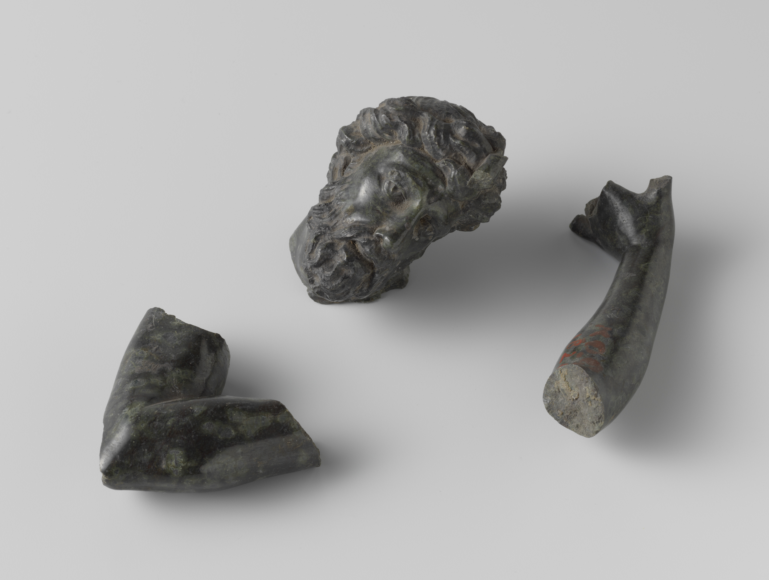 Twee fragmenten arm en een mannenkop
