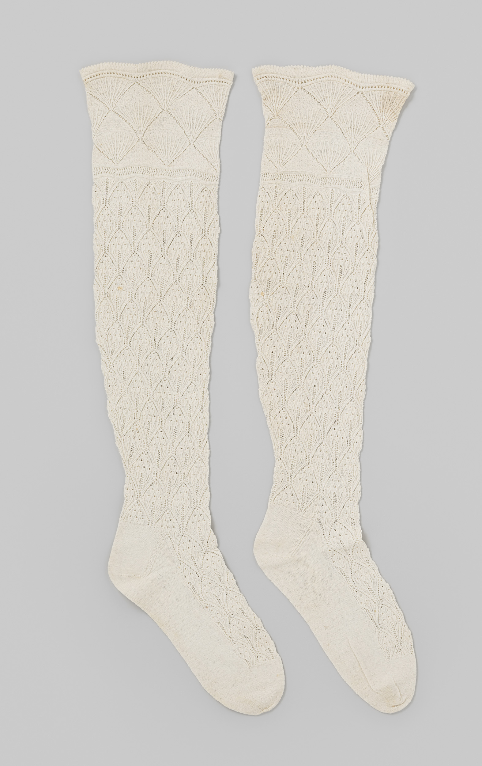 Kous van ajour gebreid wit katoen in een patroon van...
