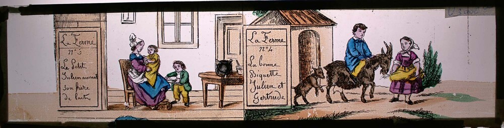8 toverlantaarnplaten voorstellende het Franse landl...