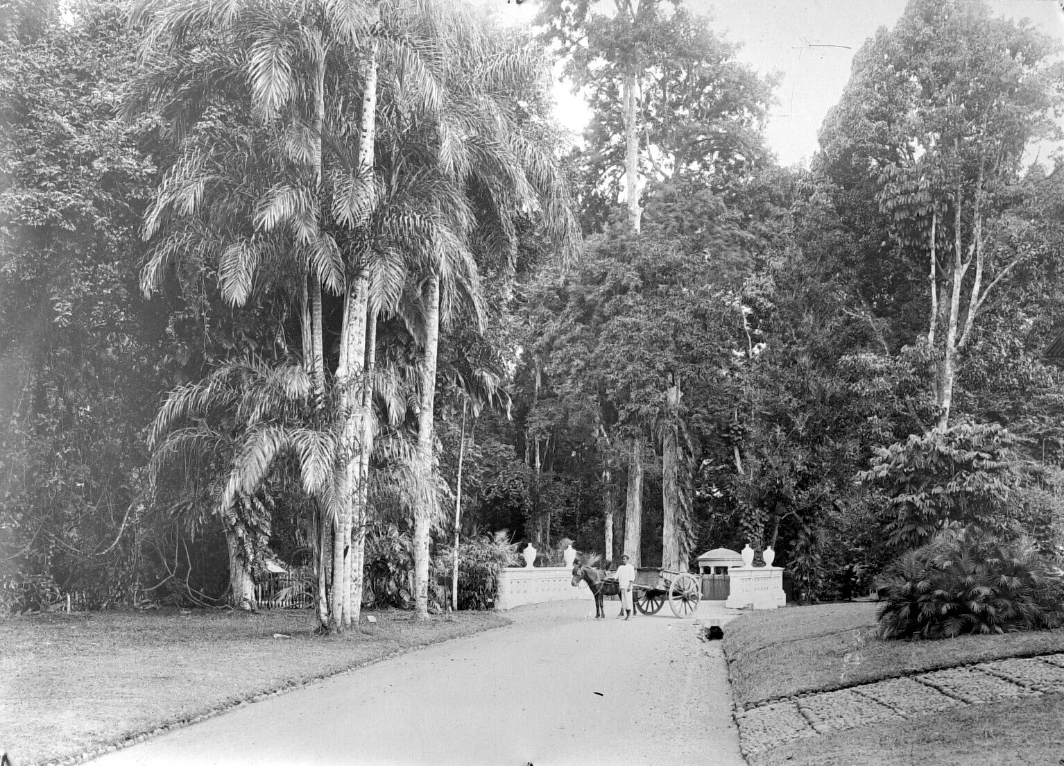 Een man staat met een rijtuig op een van de hoofdweg...