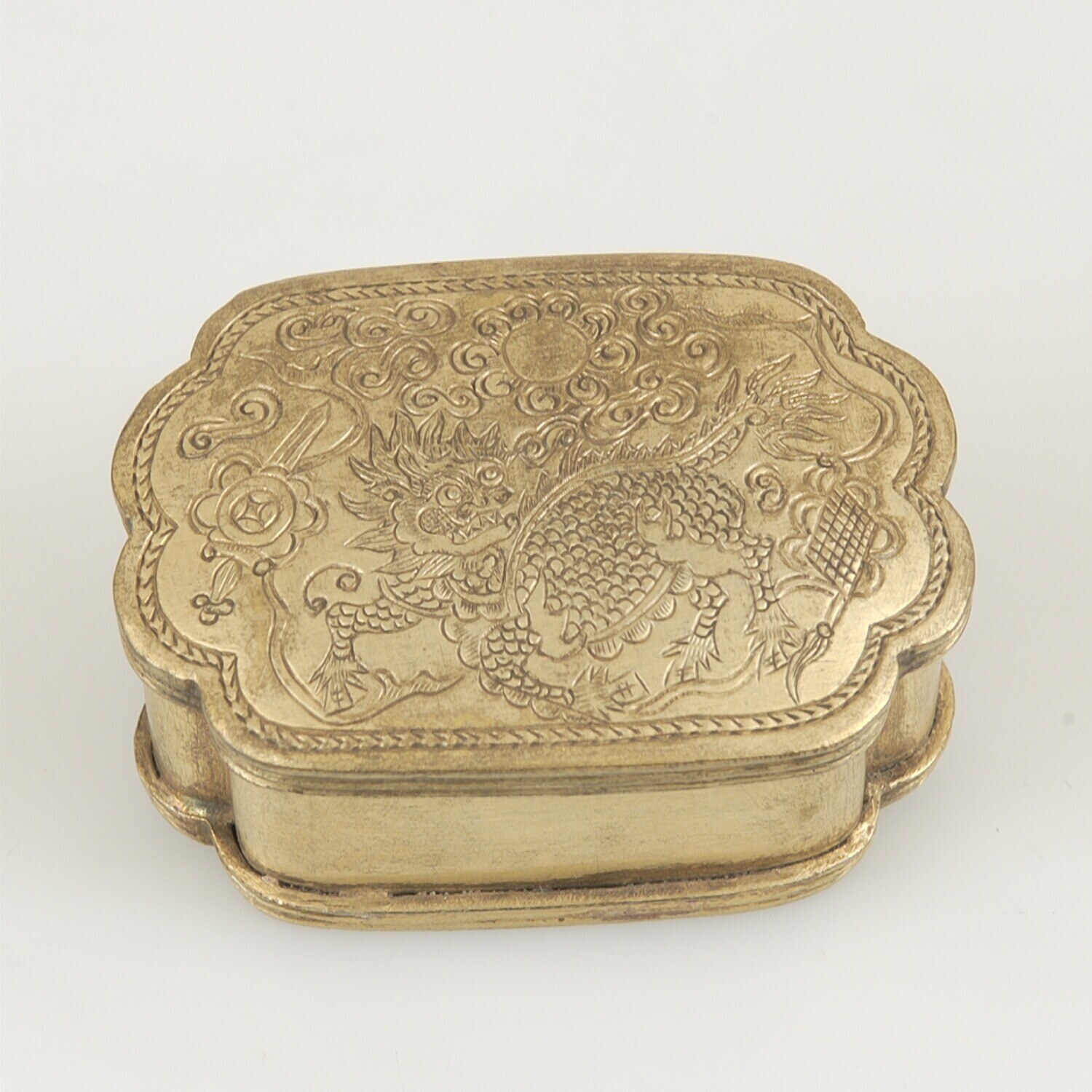 Doos van messing met drijfwerk voor het bewaren van ...