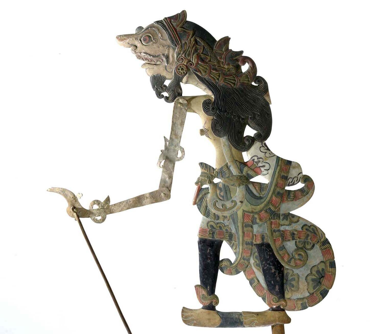 Wajangpop met lijf van hout en ledematen van karbouw...
