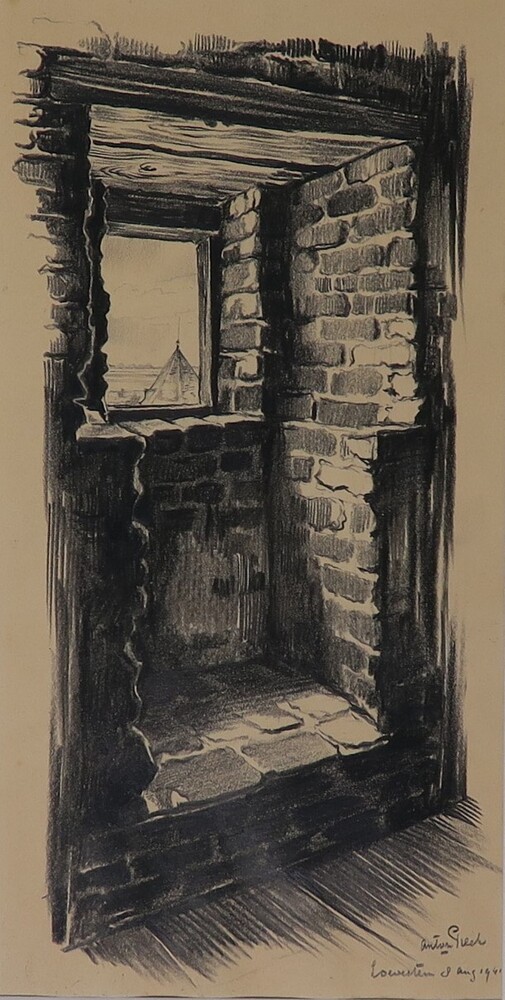 Reistekening, doorkijkje vanuit Slot Loevestein, 8 a...