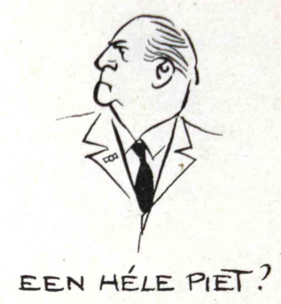 Illustratie door Jo Spier van een streng kijkende ma...