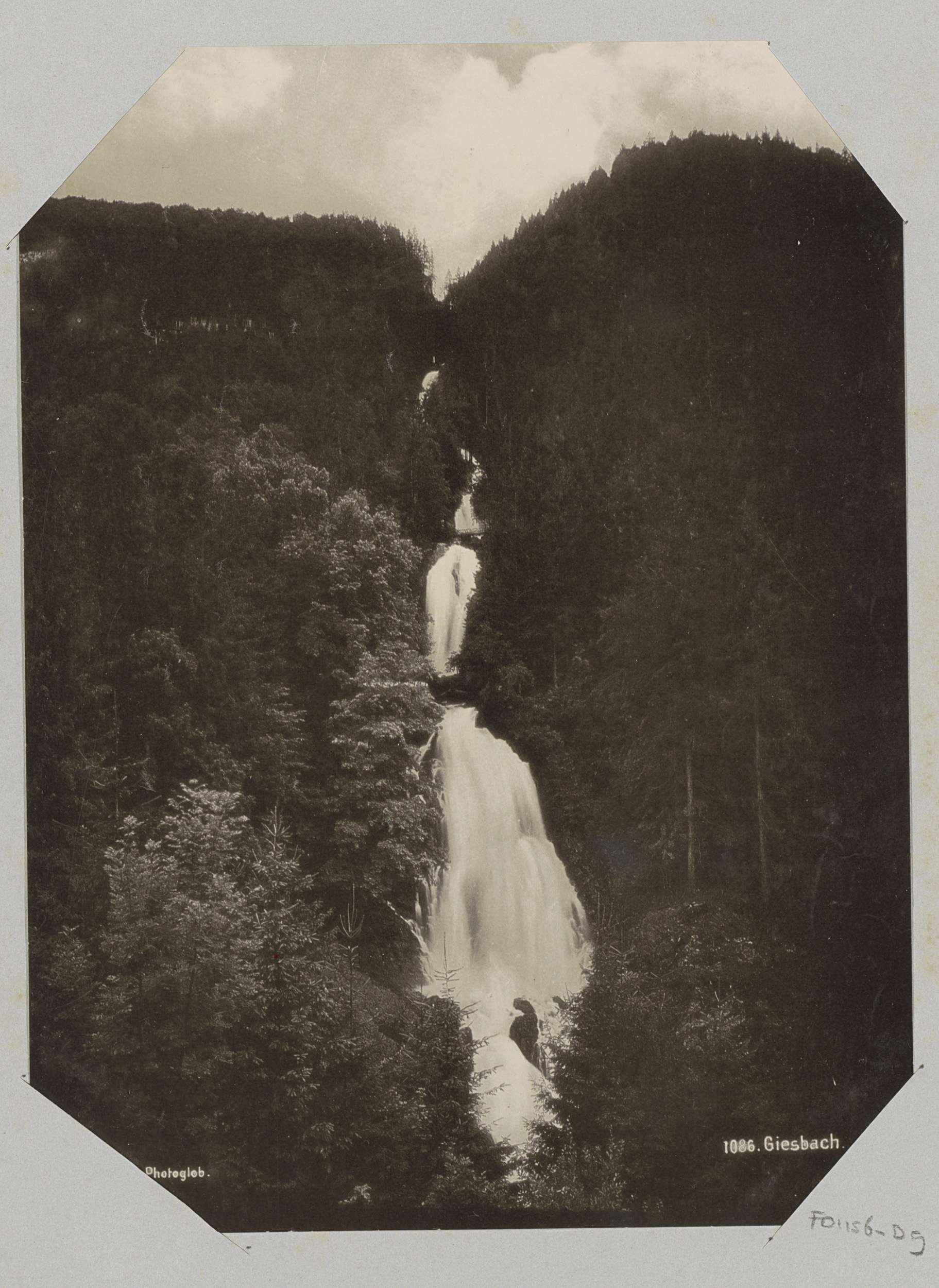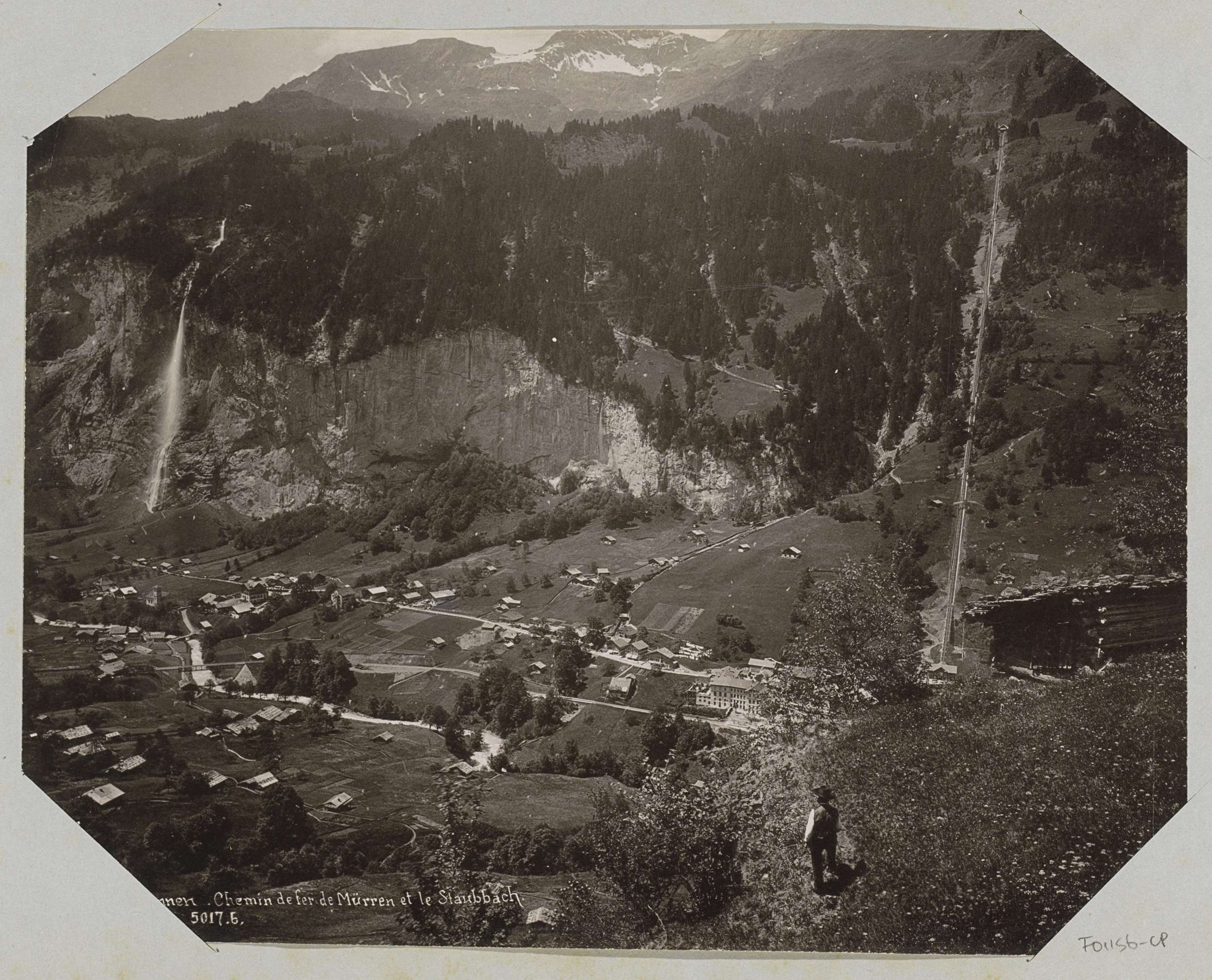 Gezicht op de Staubbachwaterval en de Mürrenbahn te ...