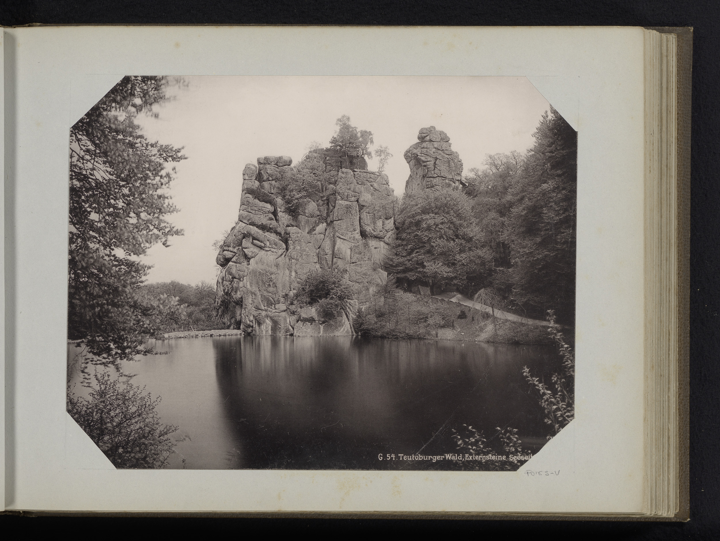 Gezicht op de Externsteine in het Teutoburgerwoud