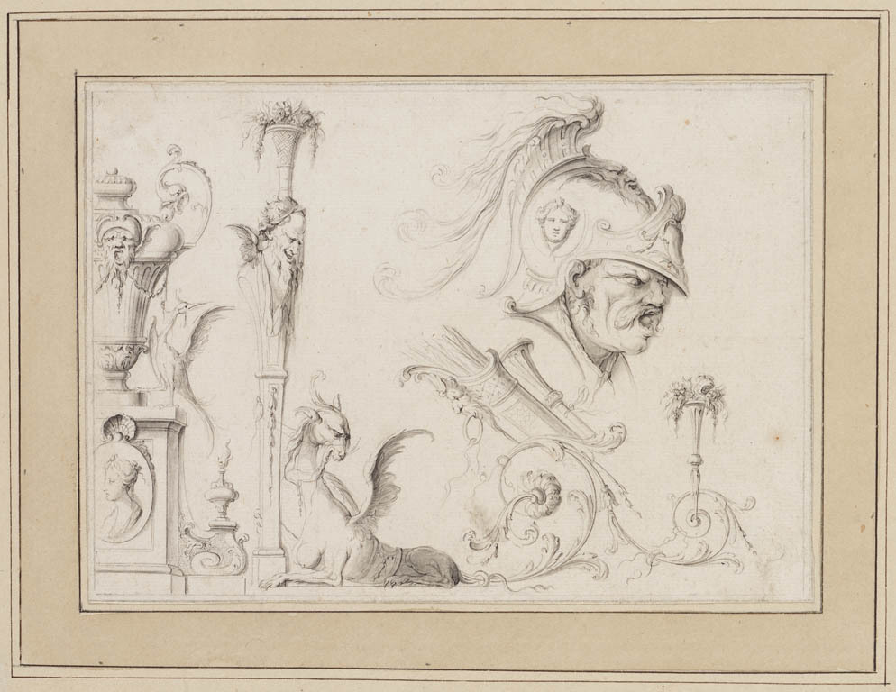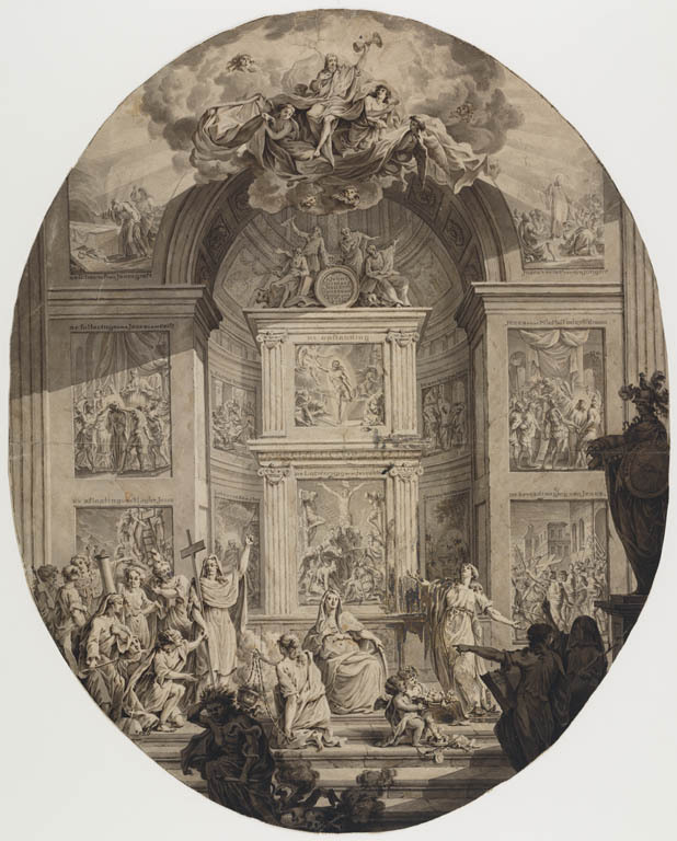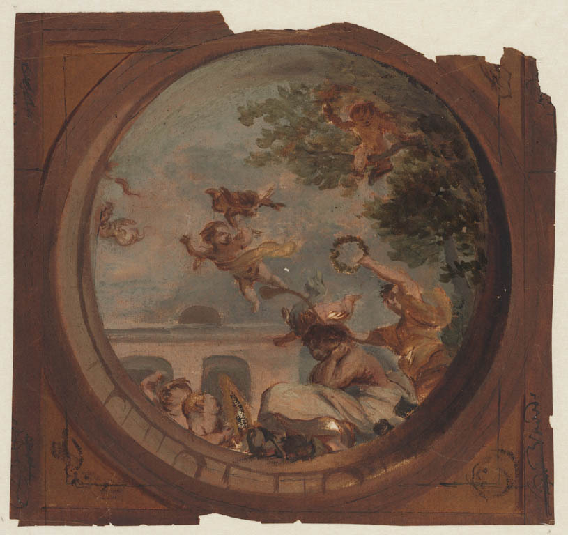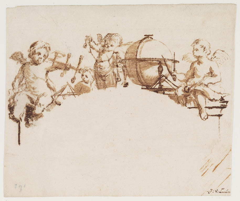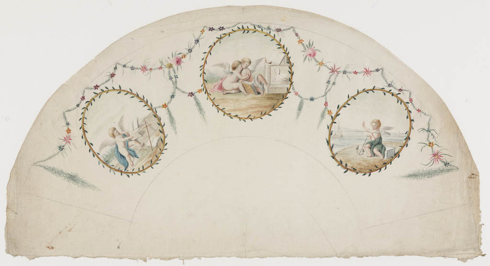 Ontwerp voor een waaier. Engeltjes met de attributen...