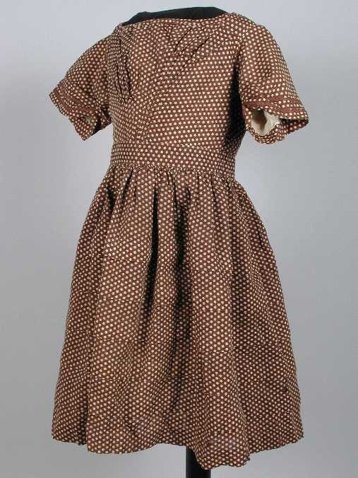 Bruine kinderjurk met witte bloempjes, lijfje met V-...