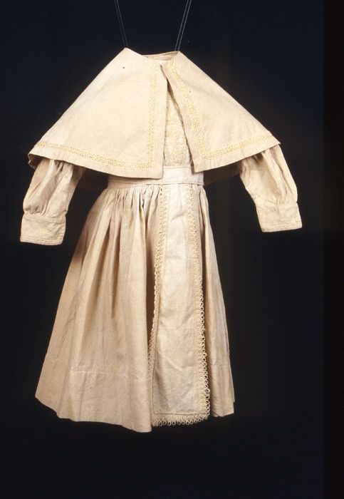 Kinderjurk met losse pelerine, ècrukleurig linnen me...