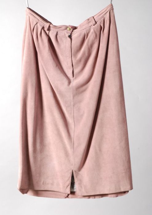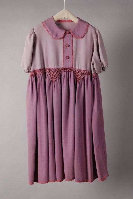 In twee tinten lila jurkje met rozerood afgebiesd en...